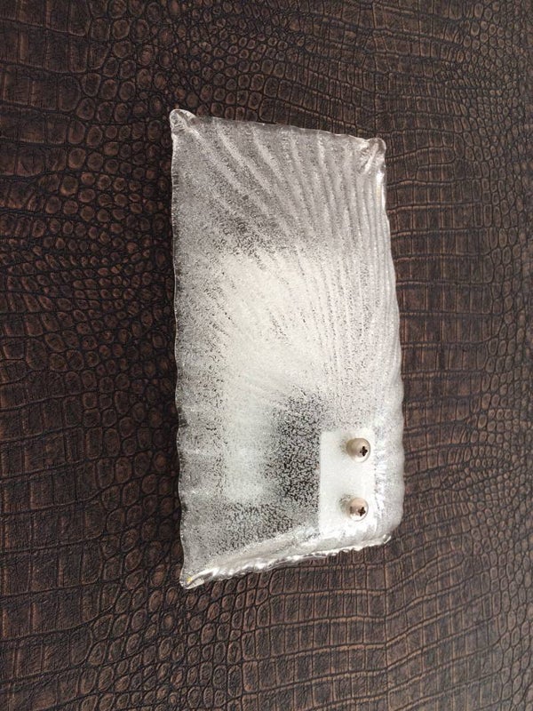 A vintage 1970's Niederau Design Ice Texture Glass Sconce Wall Lamp Applique. In very good condition. 24cm x 12,5cm x 8cm.