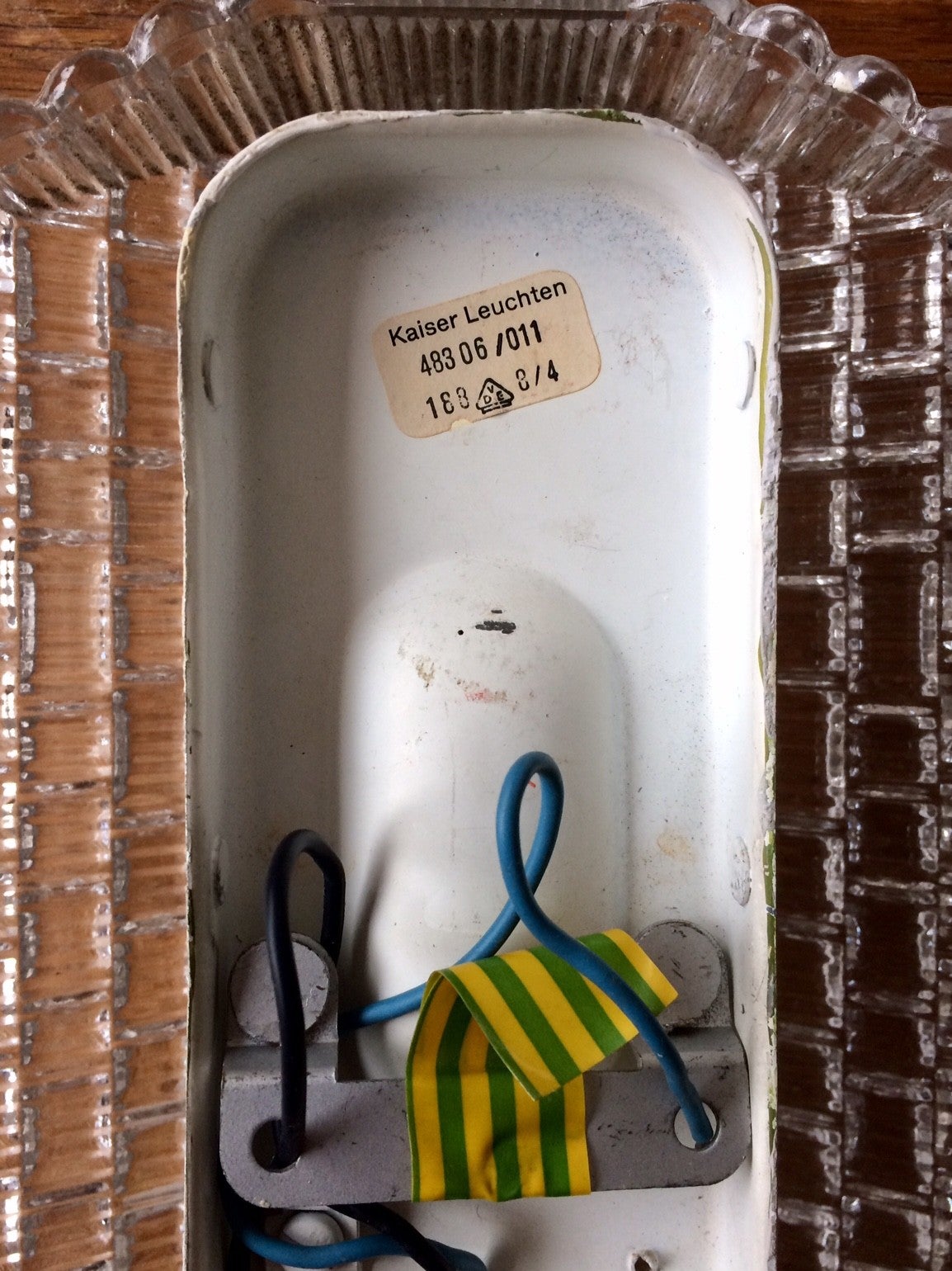 A vintage 1970's Midcentury Kaiser Leuchten Design Glass Sconce Wall Lamp Applique. Made in Germany. In very good condition. 21,5cm x 15cm x 7cm.