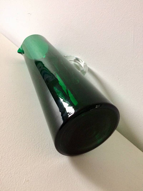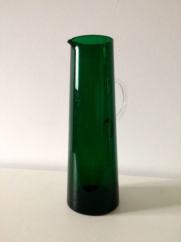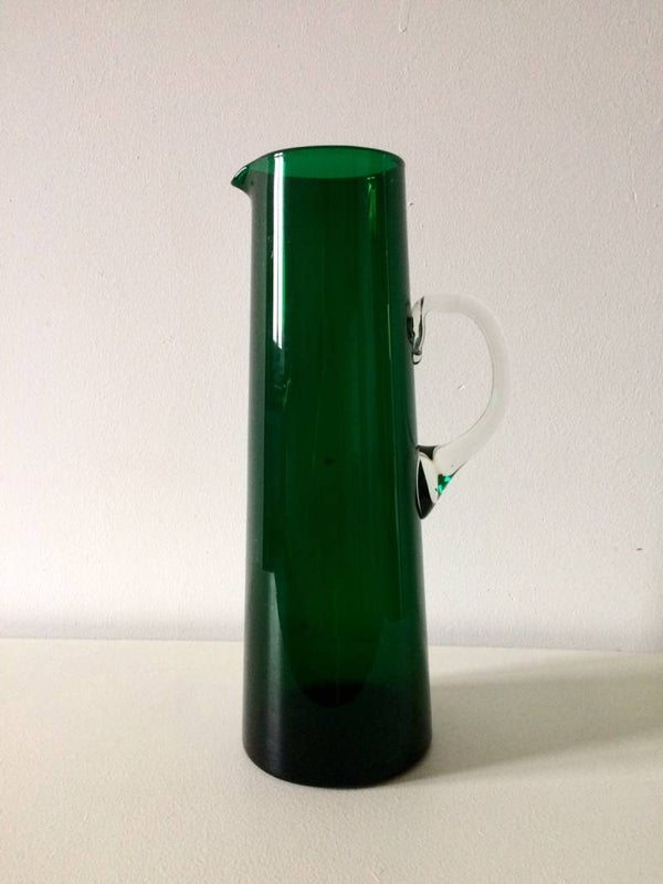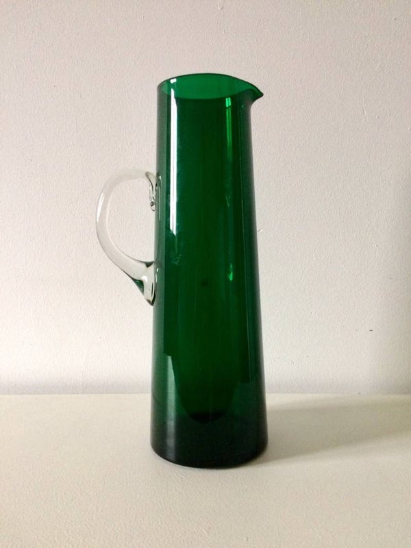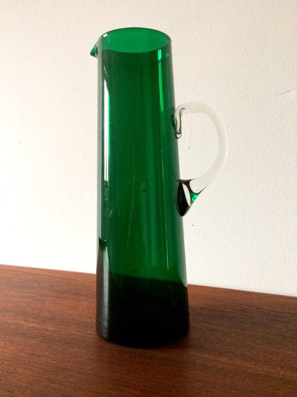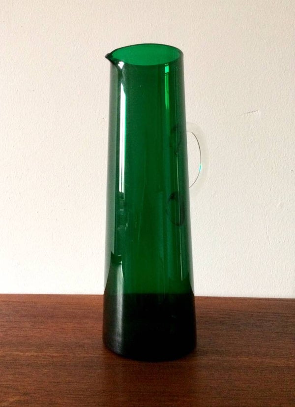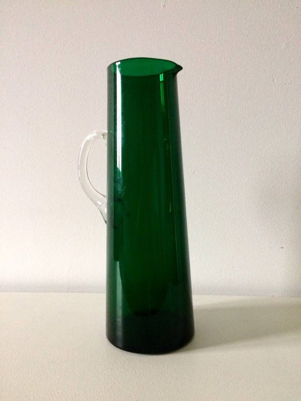 A vintage 1960's Midcentury Scandinavian Design handblown green glass pitcher. In very good condition, no chips. 31,5cm x 10,5cm x 14cm.