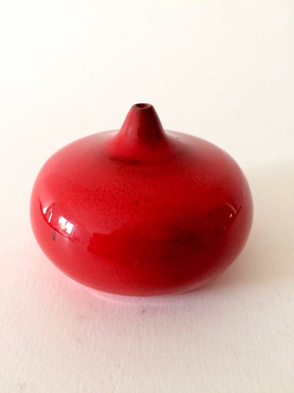Rare Belgian Art Pottery Ceramic thick red glazed Vase by Antonio Lampecco