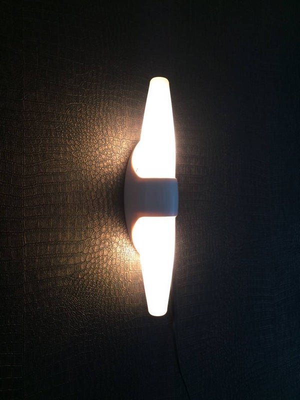 A vintage 1960's Midcentury Design Flush mount Wall Lamp Sconce by Bo-Niko, made in Belgium. Plastic frame with milk glass. 38cm x 8cm x 8,5cm.