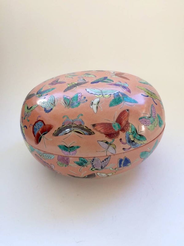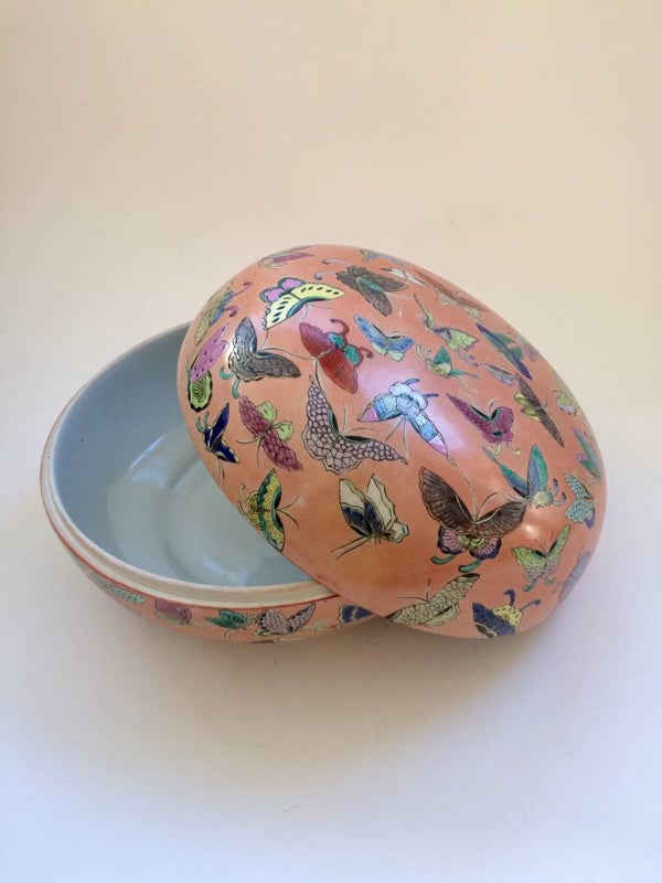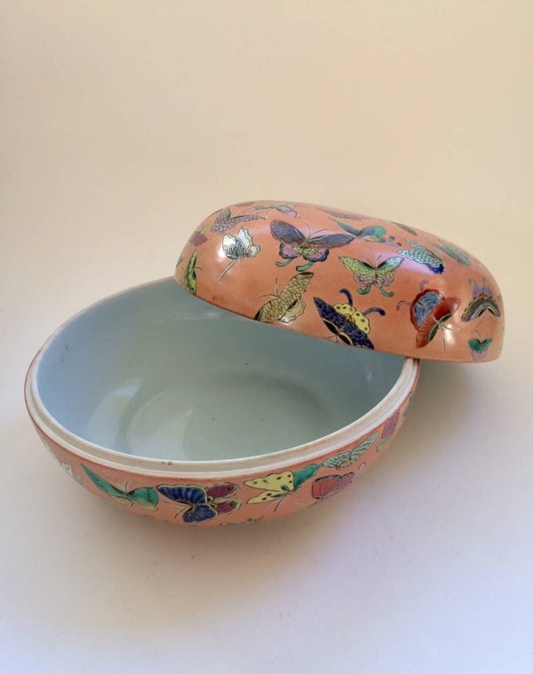 1960's Ceramic China Porcelain large Butterfly Container Bowl