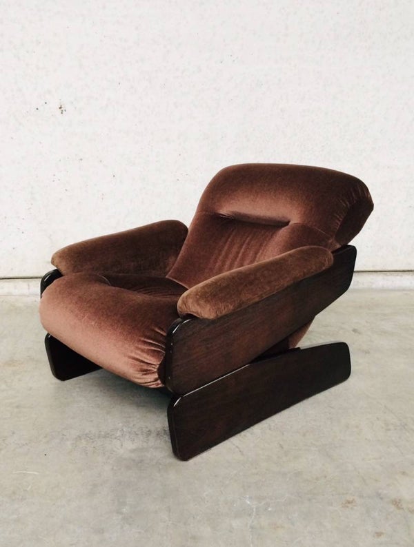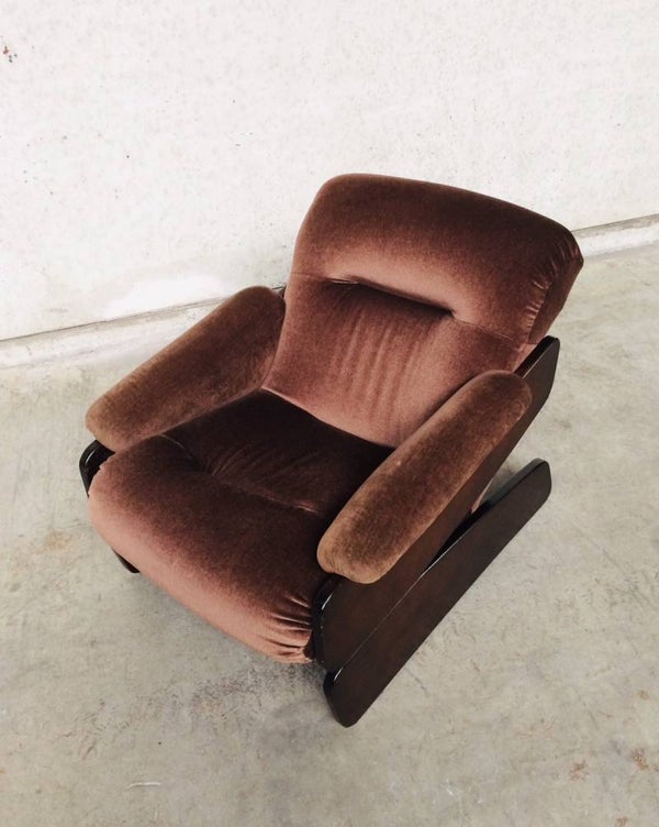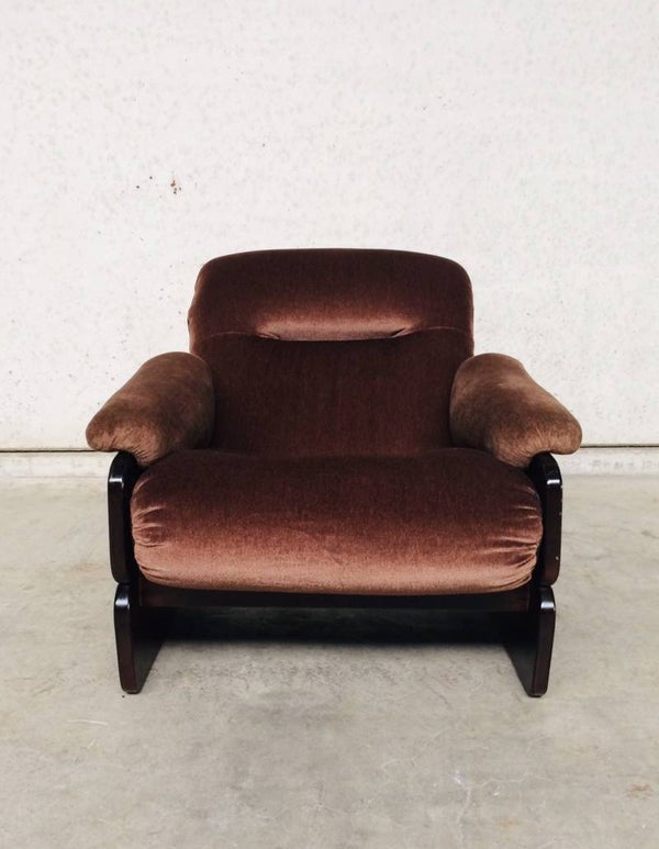 Midcentury 1970's Scandinavian Design Super soft brown velvet Lounge Chair Sofa