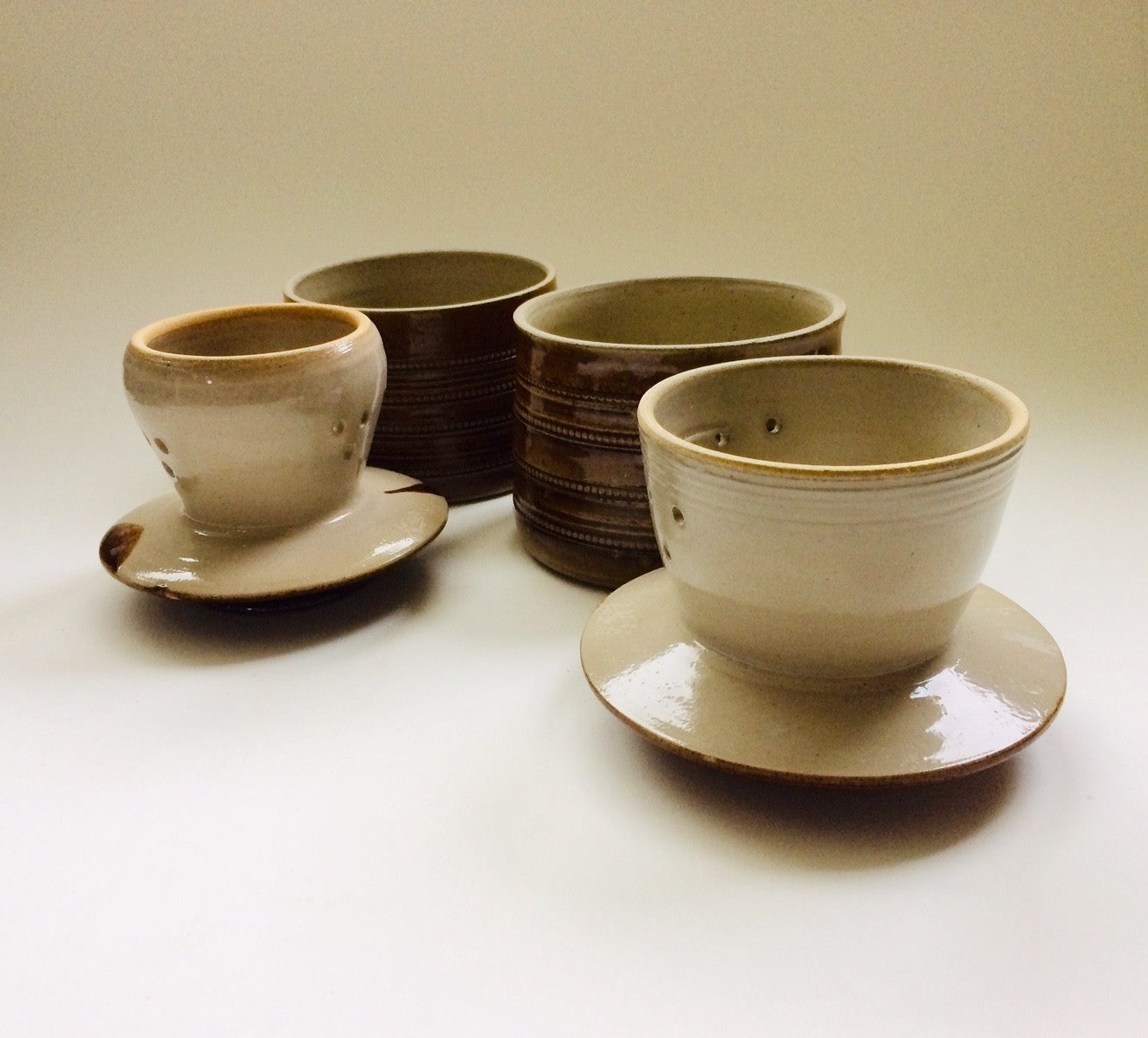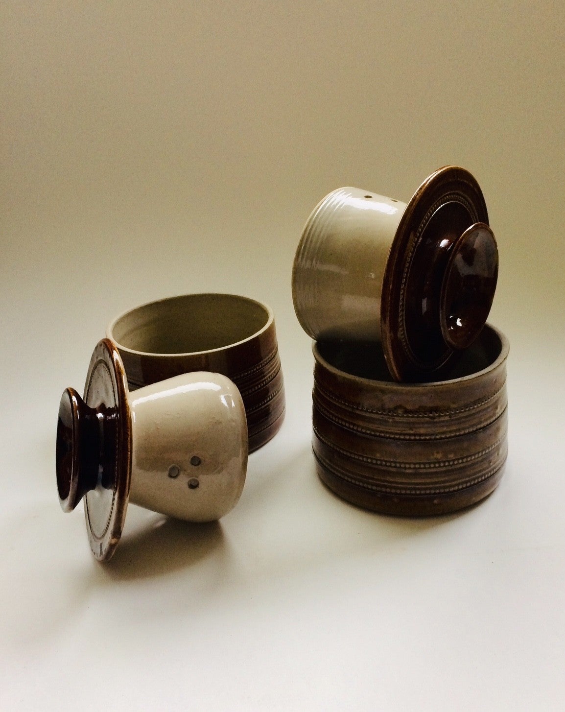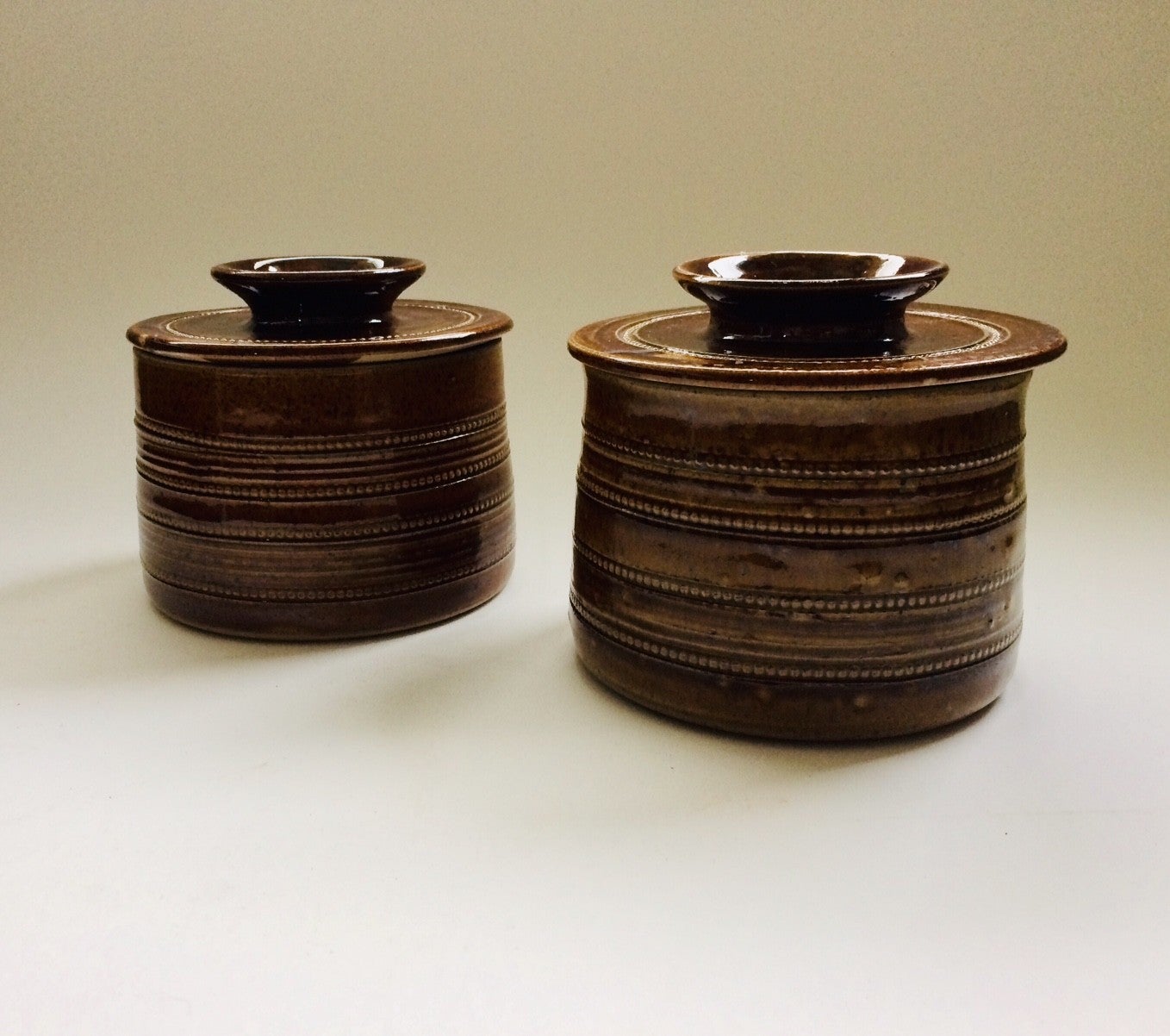 Vintage Midcentury 1950's French Stoneware Saltglazed Pottery 'Gres Du Berry' Beurrier Butter Bell pot. In perfect condition. Each measures: 13cm x 13cm x 11,5cm.