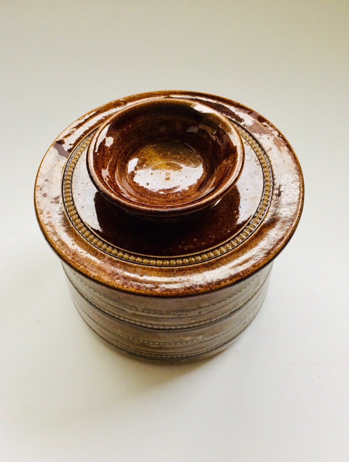 French Stoneware Saltglazed Pottery Gres Du Berry Beurrier Butter Bell 1950's
