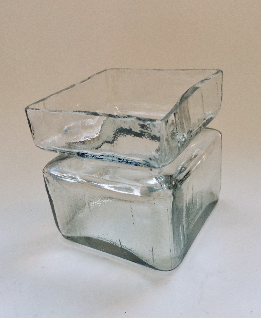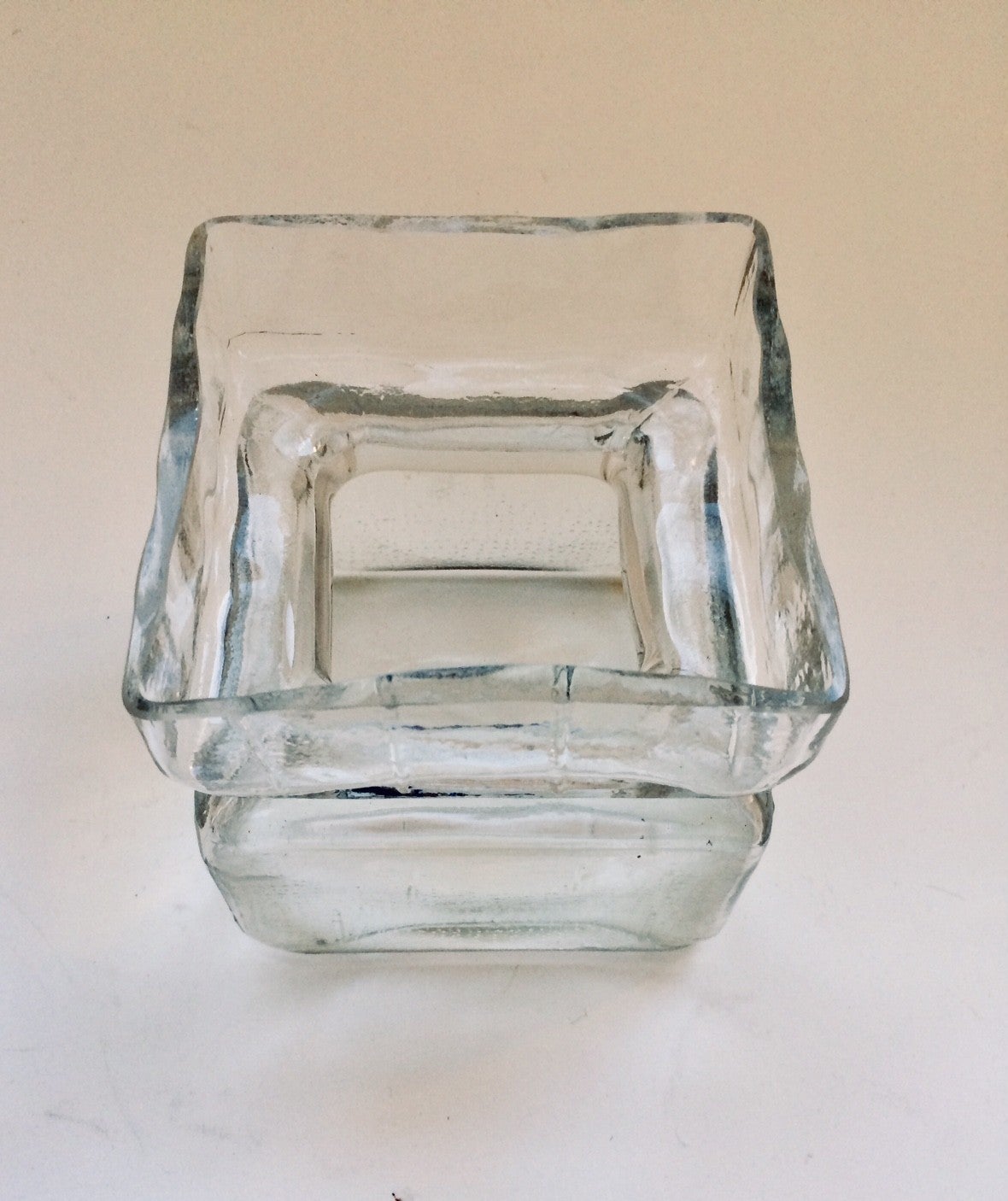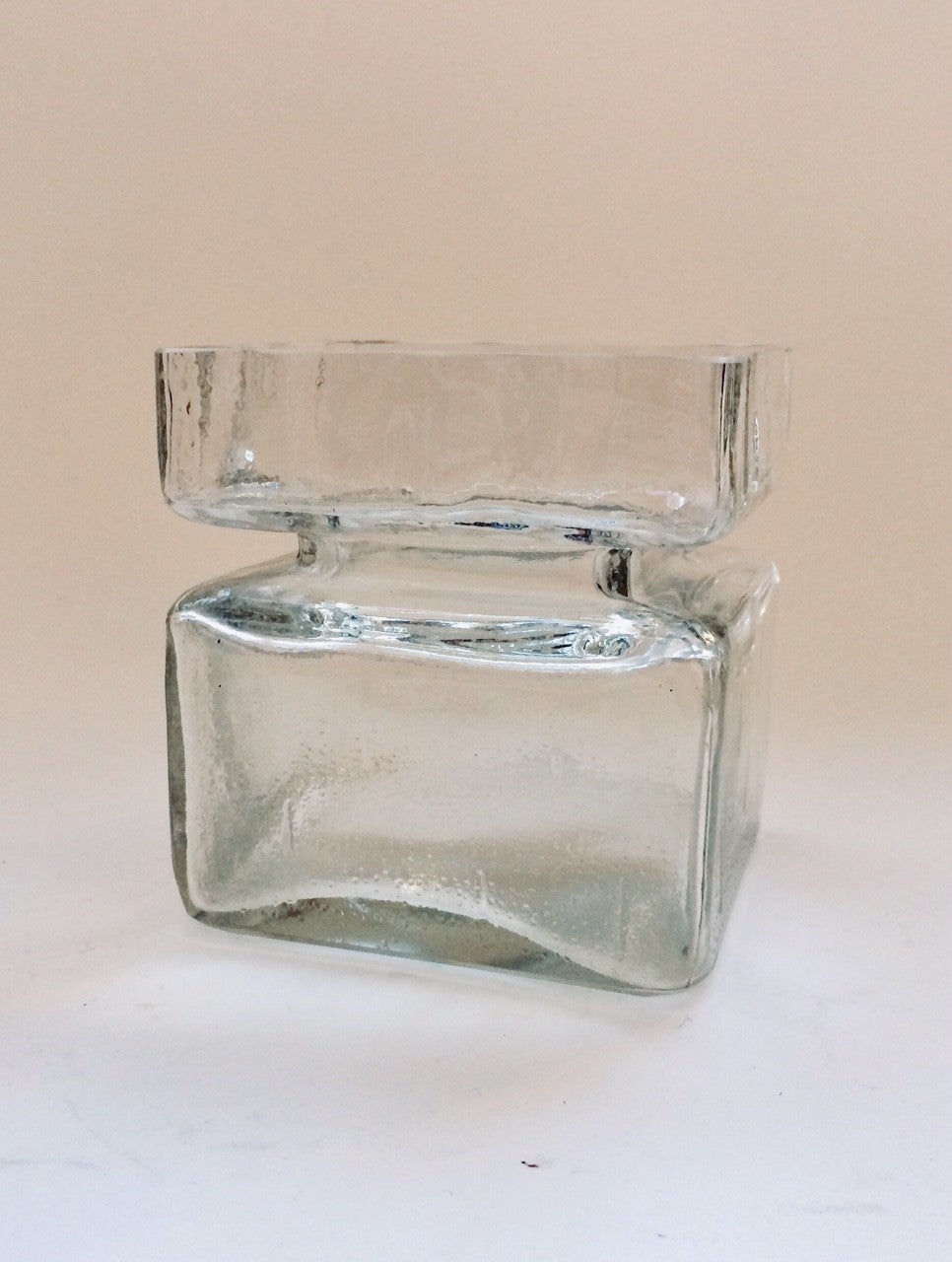 Vintage Midcentury Modern 1960's Scandinavian Art Glass Square Pala Vase. Made in Finland. Design by Helena Tynell. Manufacturer: Glasmanufaktur Riihimakii / Riihimäen lasi oy Finland. Very good condition. 10,5cm x 10,5cm x 11,5cm. Transparant clear glass model.