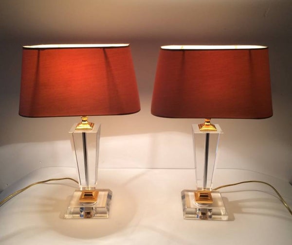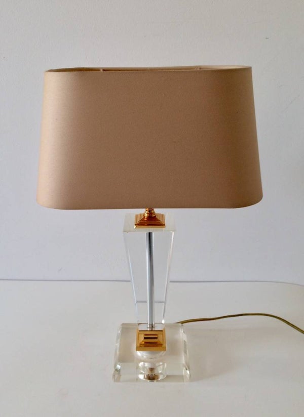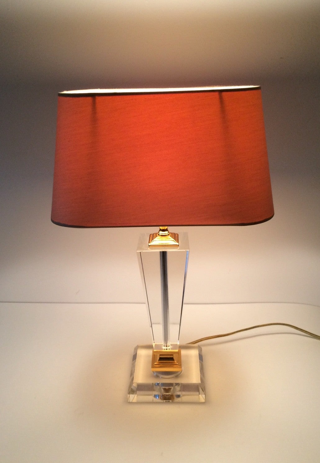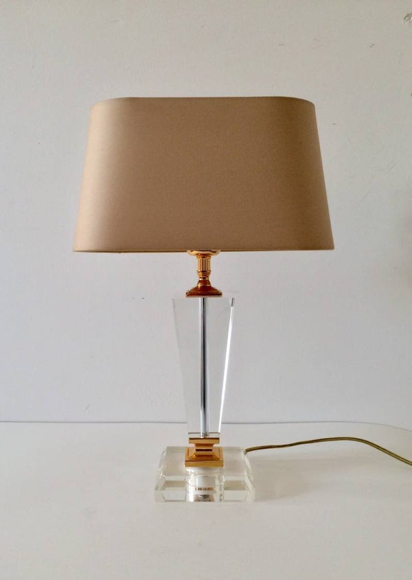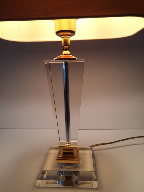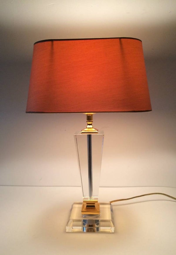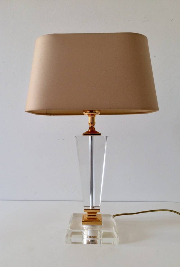 Vintage 1980's Hollywood Regency Style Glass base lamp with shade by Massive. This comes in very good condition. 47cm x 29cm x 18cm.