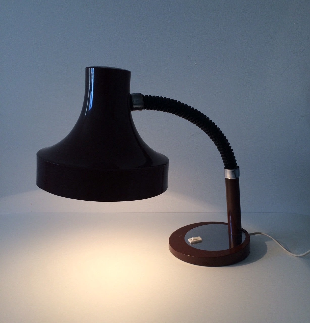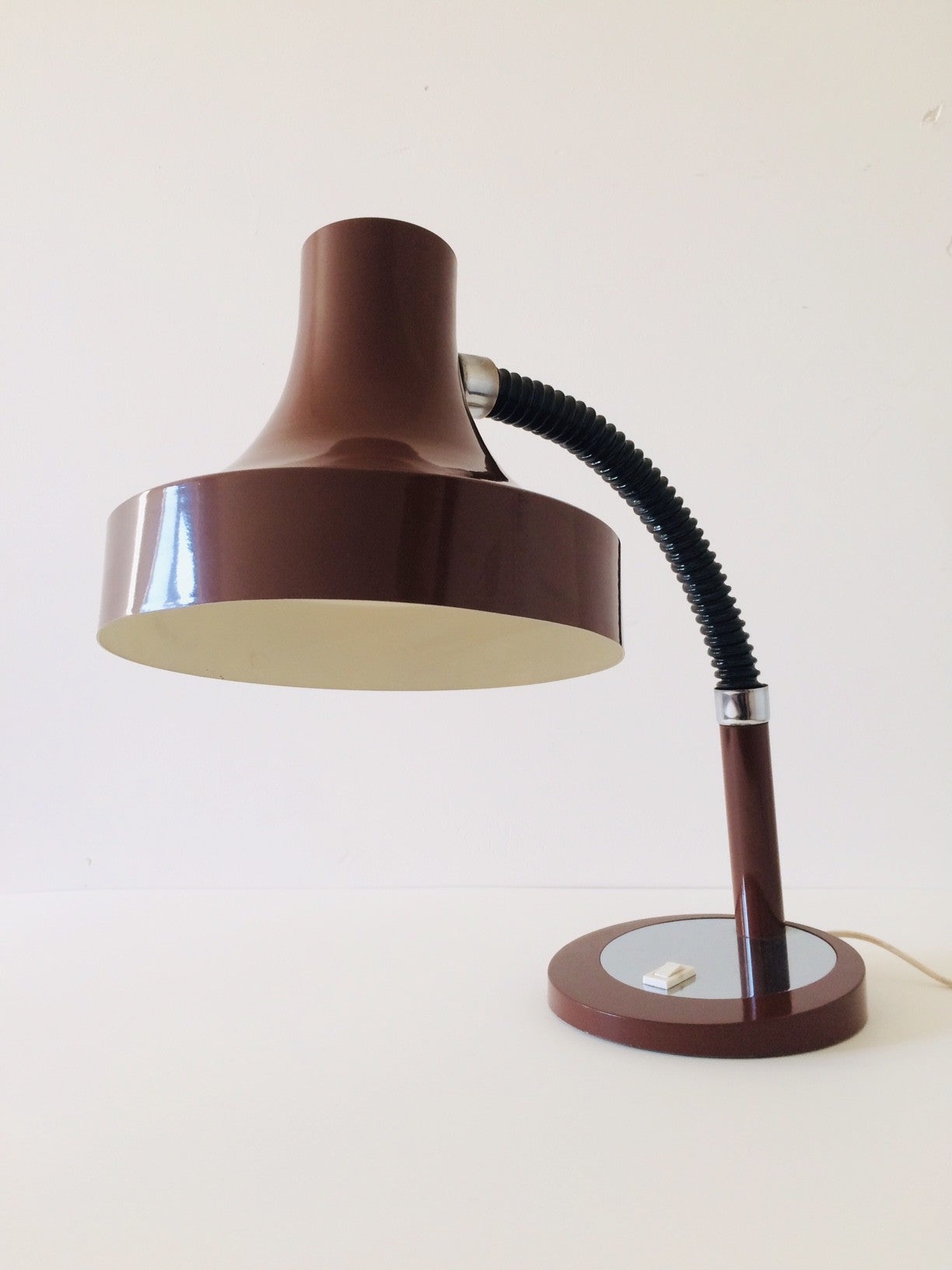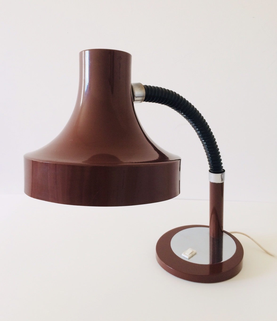 Vintage Midcentury Modern 1970's German Design oversized shade brown desk lamp. In perfect condition. Adjustable. In bent position this measures: 42cm x 43cm x 24cm.