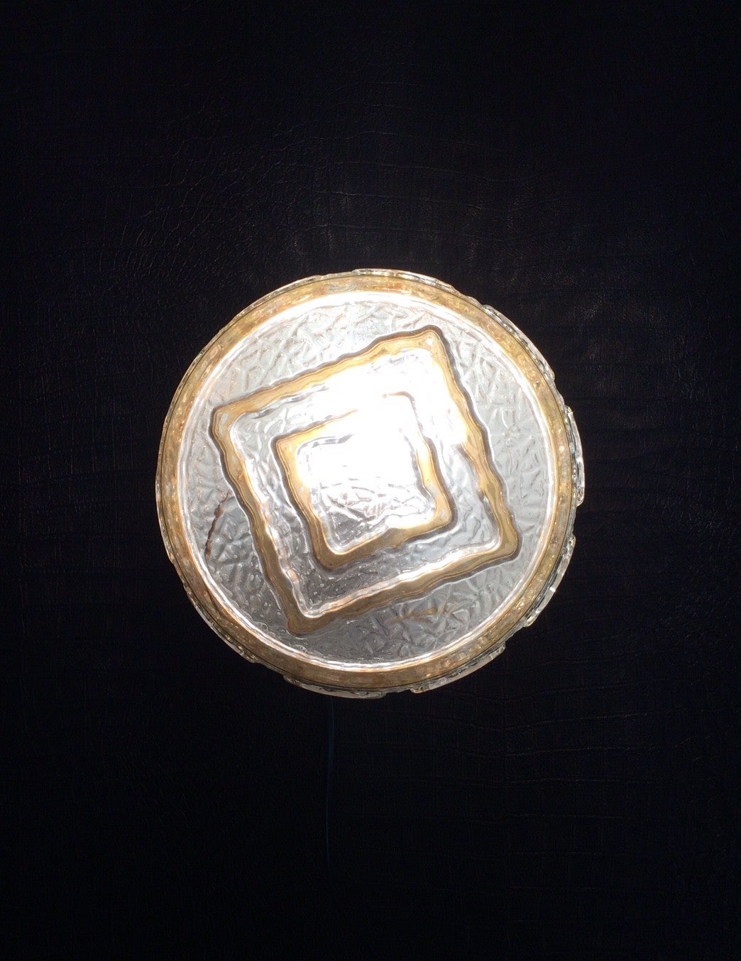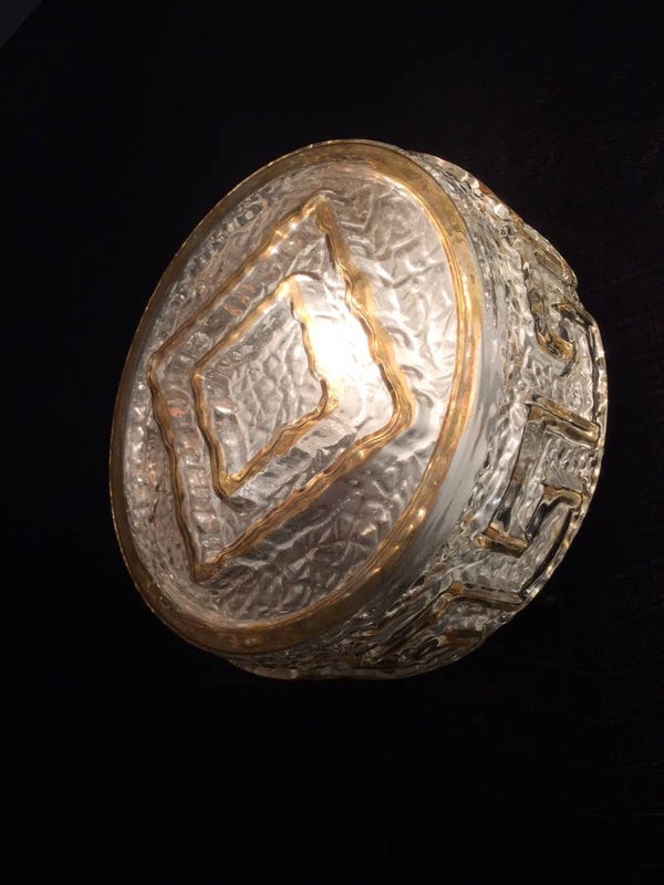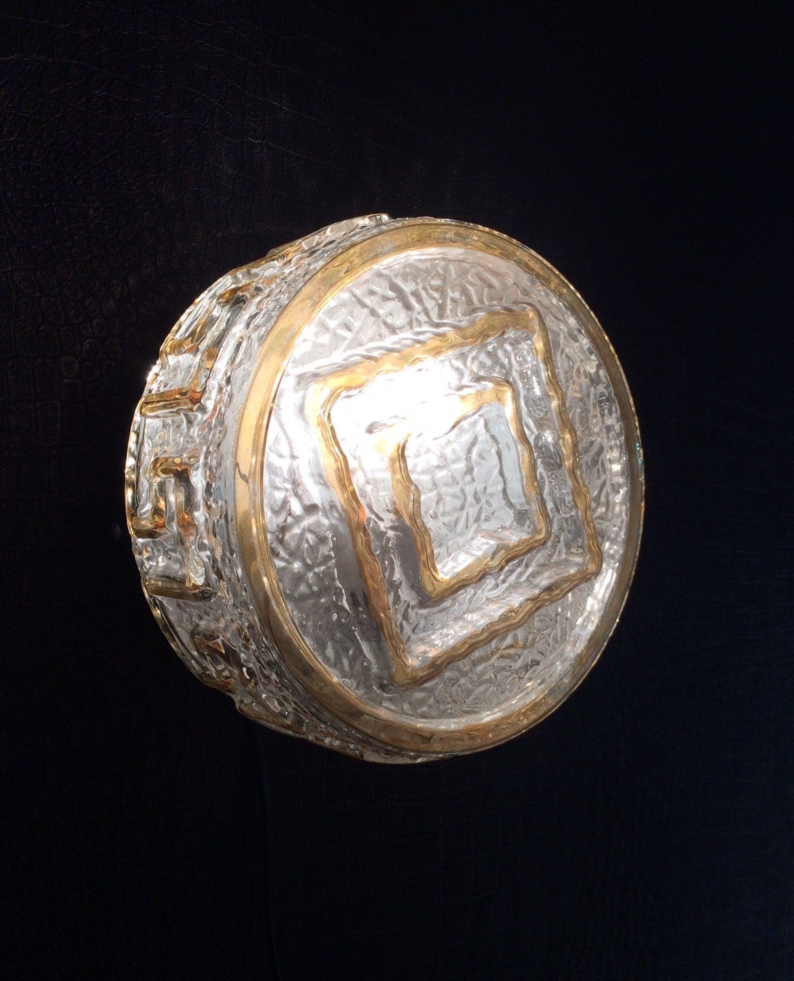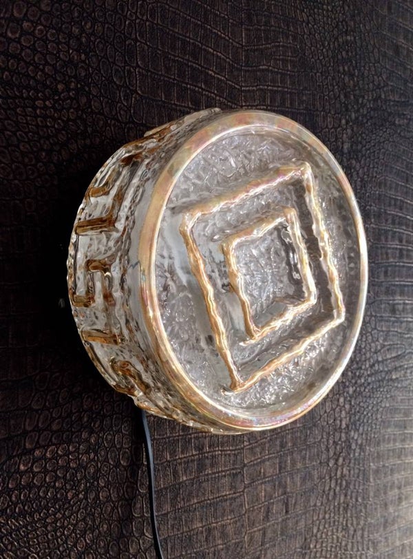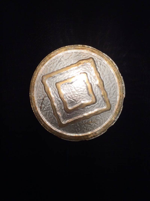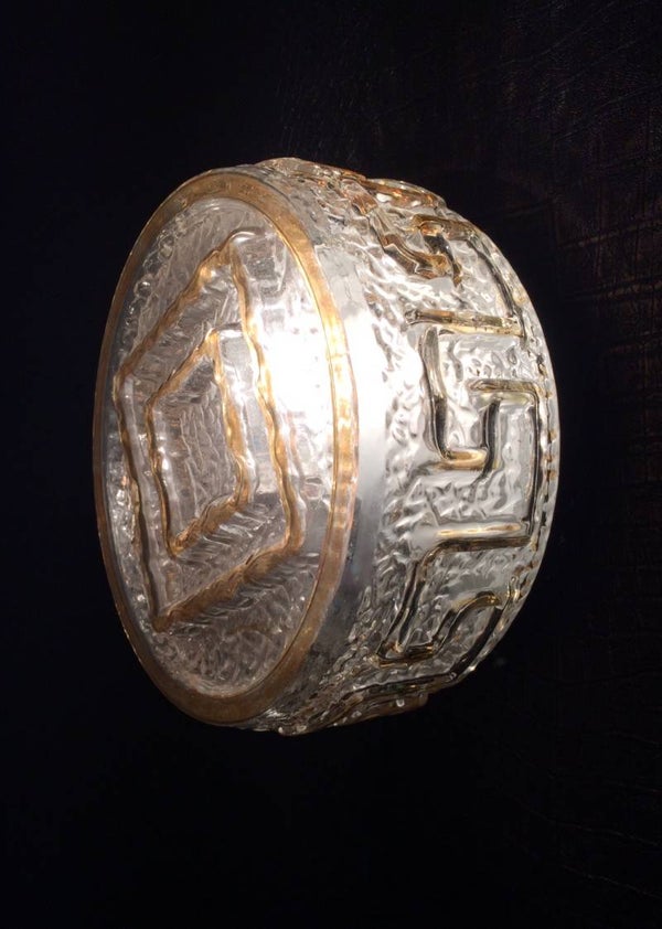 Vintage Midcentury Modern 1960's Design glass sconce with gold trim wall or ceiling lamp. Made in Germany. In very good condition. 20cm x 20cm x 11cm.