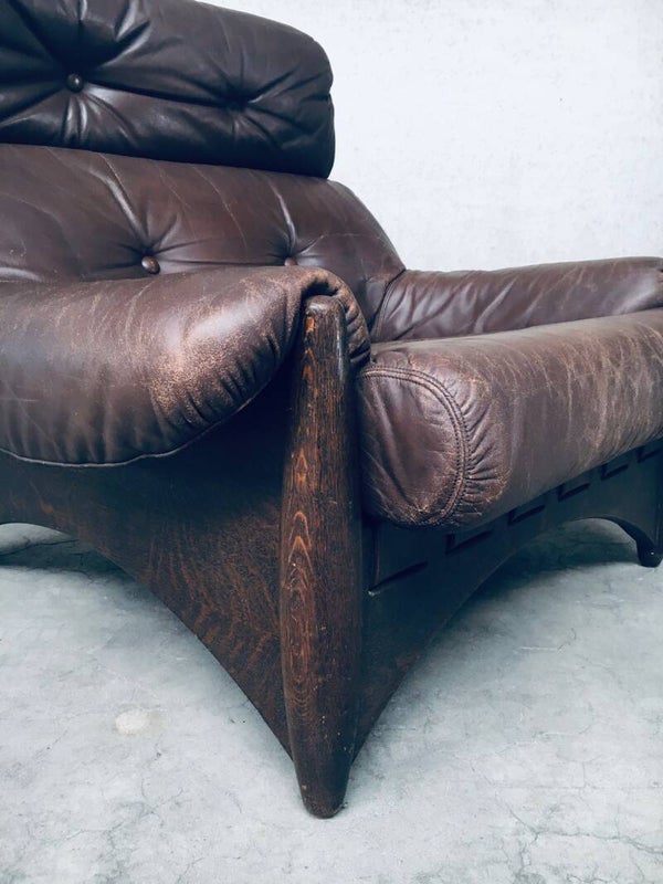 1970's Brazilian Style Design Leather Lounge Chair set
