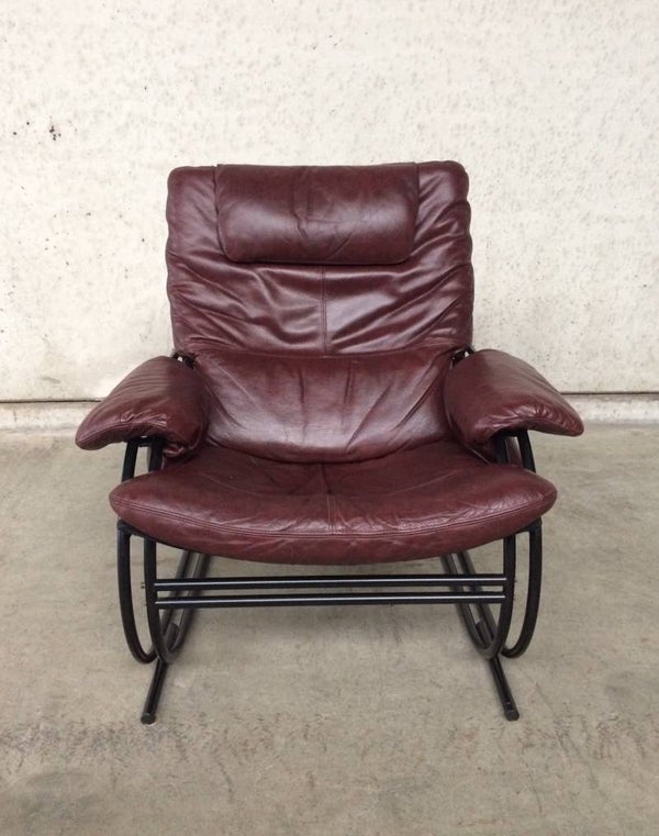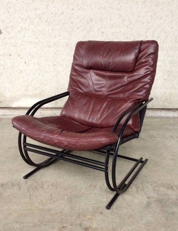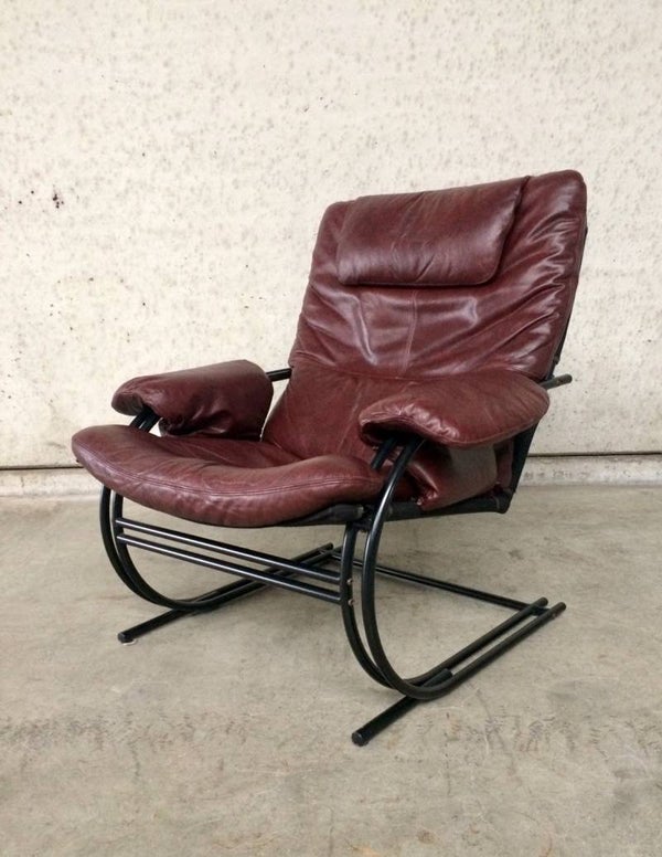 1970's Ultra Light Design Leather Relax Arm Chair metal tube frame