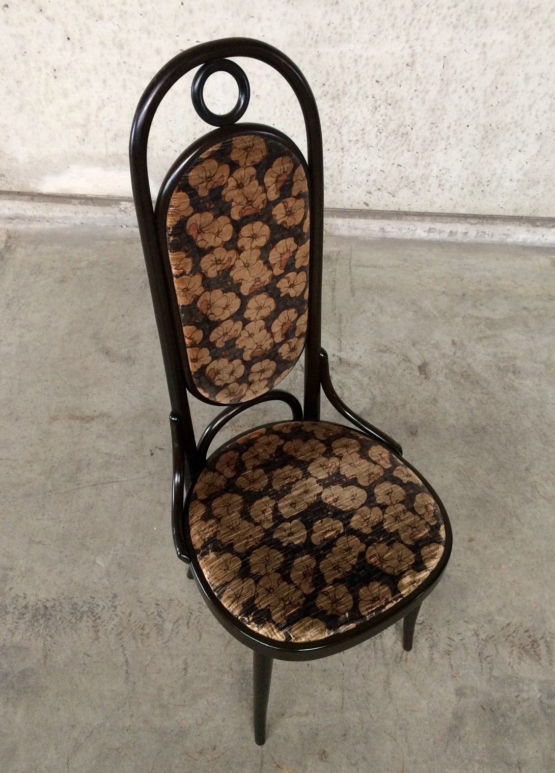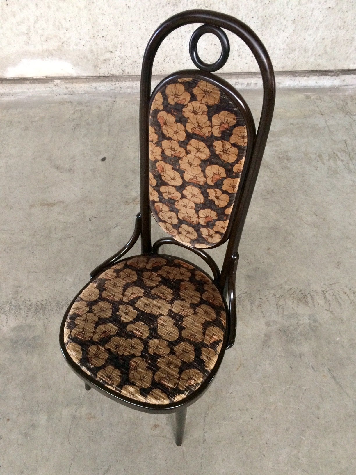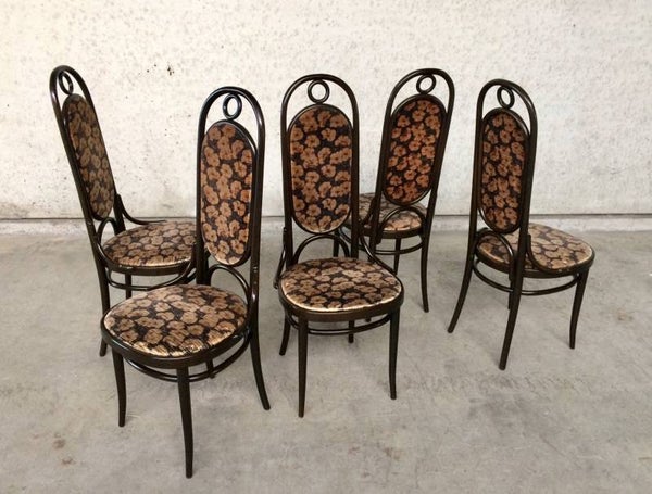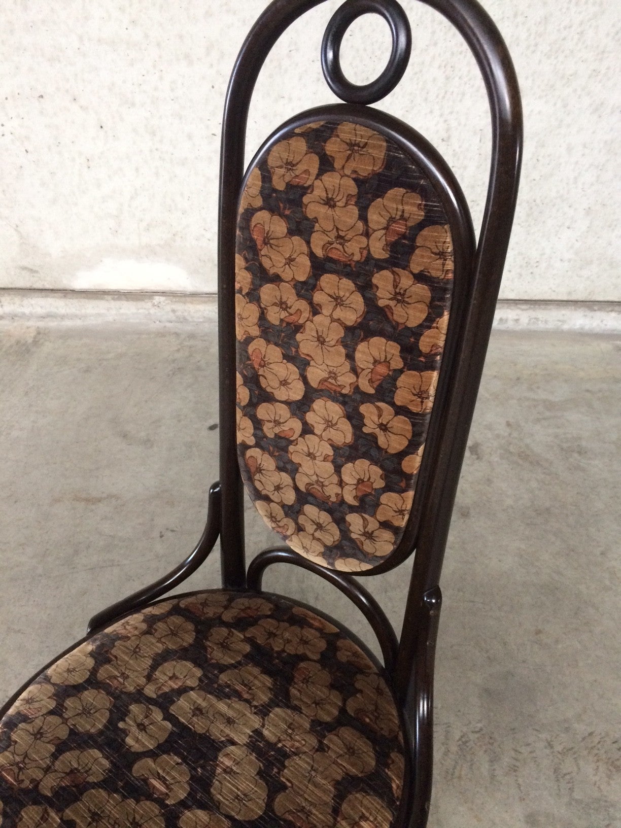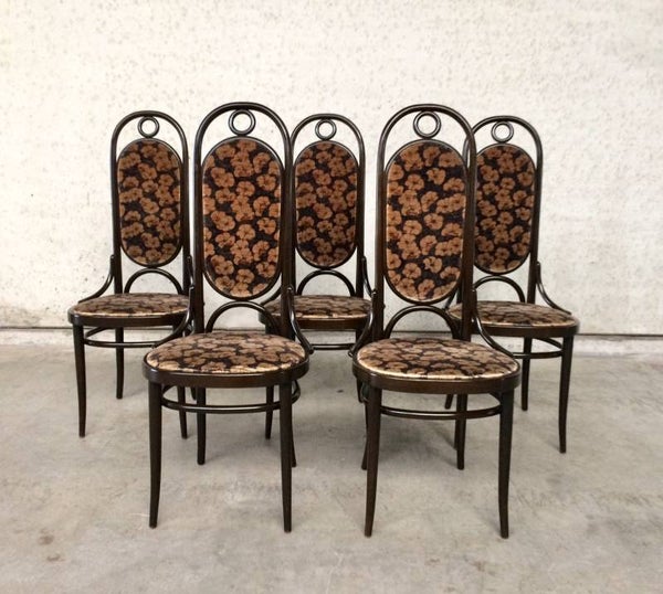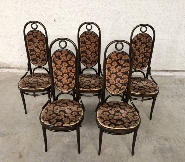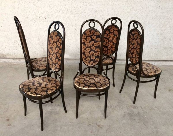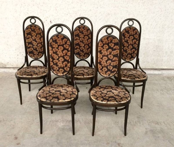 Vintage Midcentury Modern Design Dining Set. Set of 5 Model 207 R 'Long John' chair chairs & Extendable Table by Thonet. Marked Thonet79. 1979 issues. Table can be extended from a round table to a large 10 person table. Chairs come with original limited edition flower fabric covered seats and backs. All original. In good condition. A rare set.