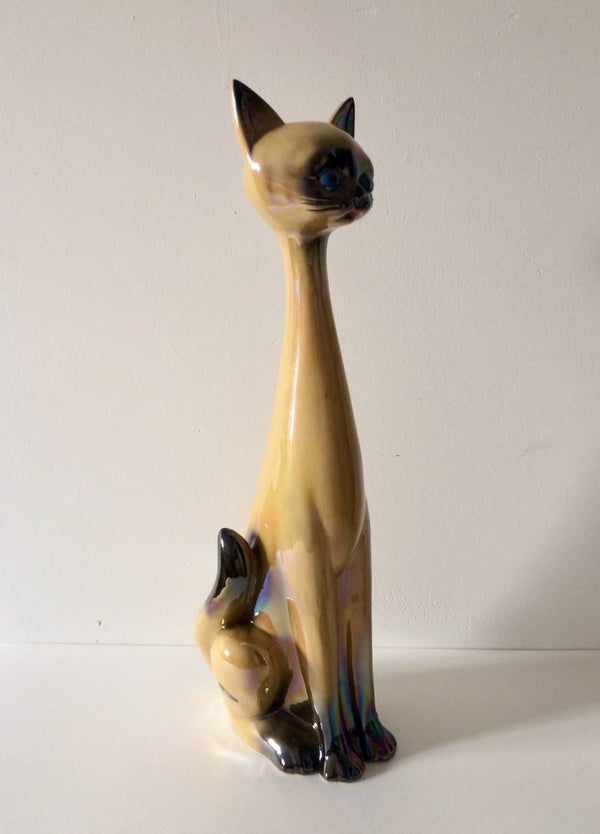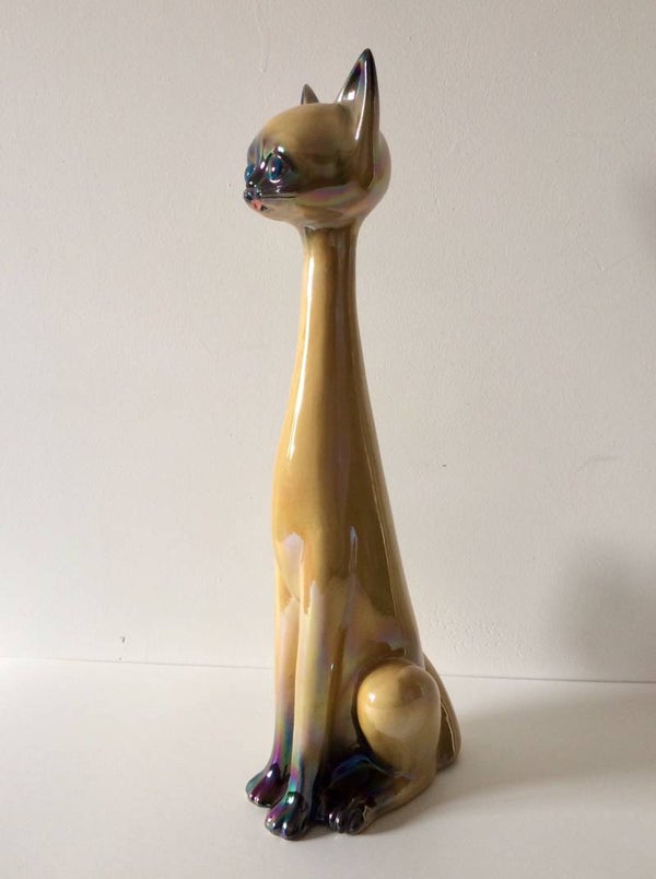 Vintage Midcentury Design 1960's Kitsch large ceramic Siamese Cat by Jema Holland, ref. nr. 446. In perfect condition. Nice luster glazed, with original brand sticker. 55cm tall.