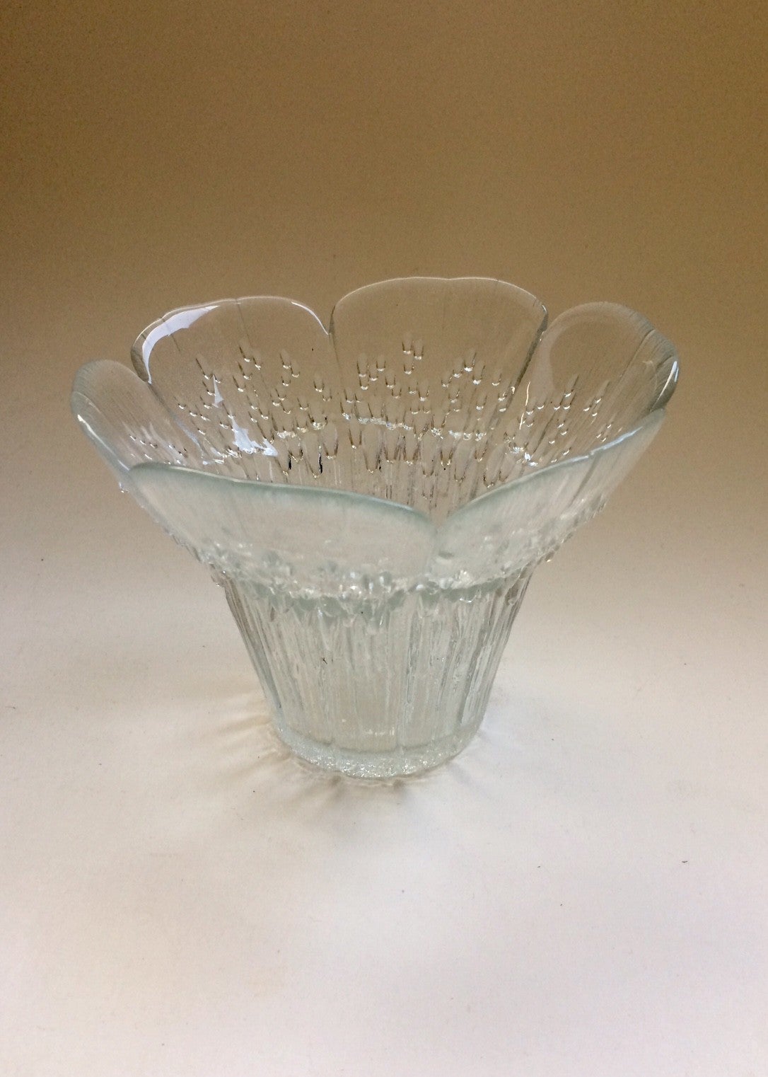 Vintage Midcentury Modern Design Art Glass Flower Vase by Pertti Kallioinen for Lasisepat Mantsala, Finland 1960's. In perfect condition. 10,5cm x 14cm x 14cm.