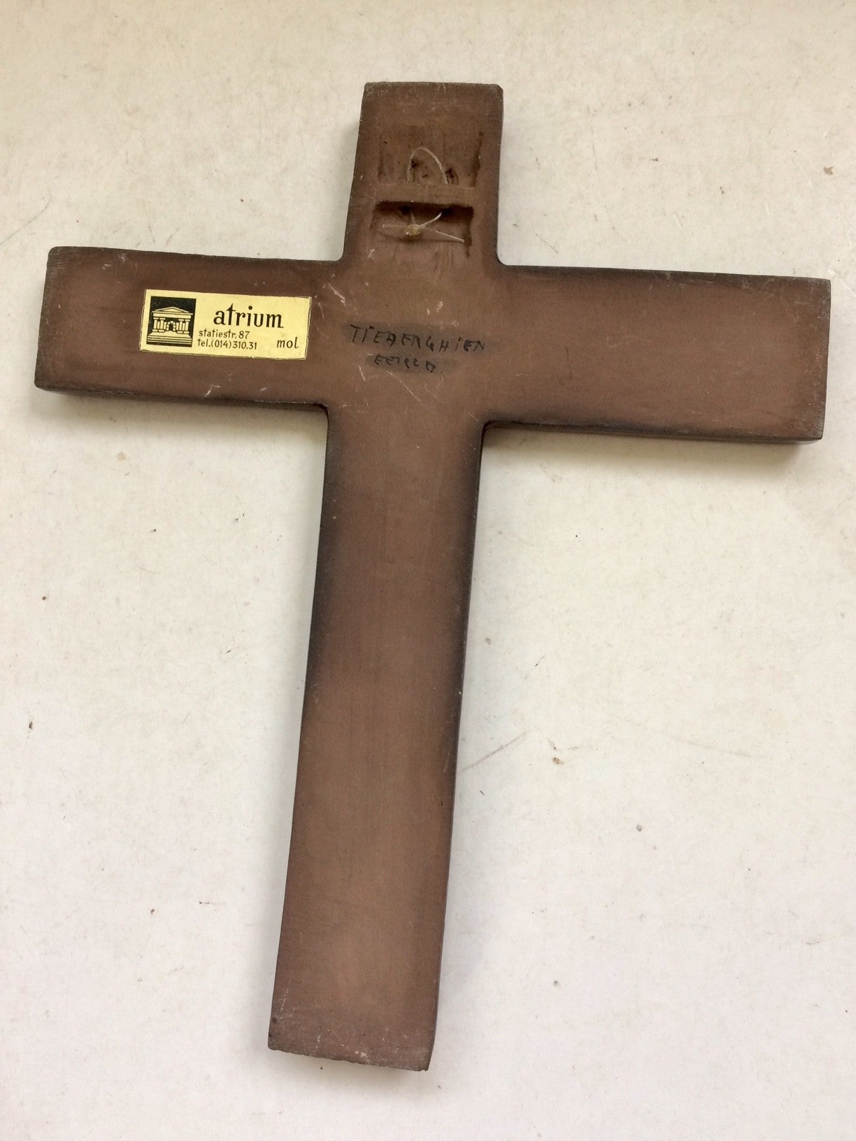 Vintage 1960's Art Ceramics Christ Cross by Tieberghien Pottery Studio, Belgium. Modernist design. In very good condition. 22cm x 18cm x 1cm.