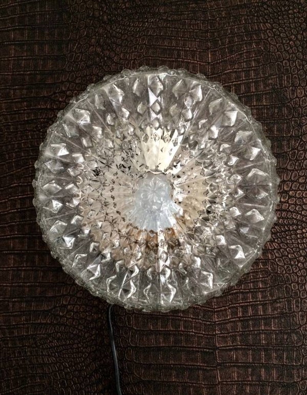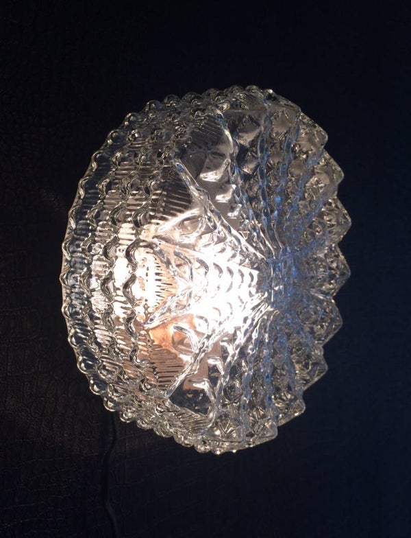Vintage Midcentury Modern Design glass wall lamp sconce by RZB Leuchten, Germany 1960's. In very good condition, glass is perfect. 24cm x 24cm x 11cm.