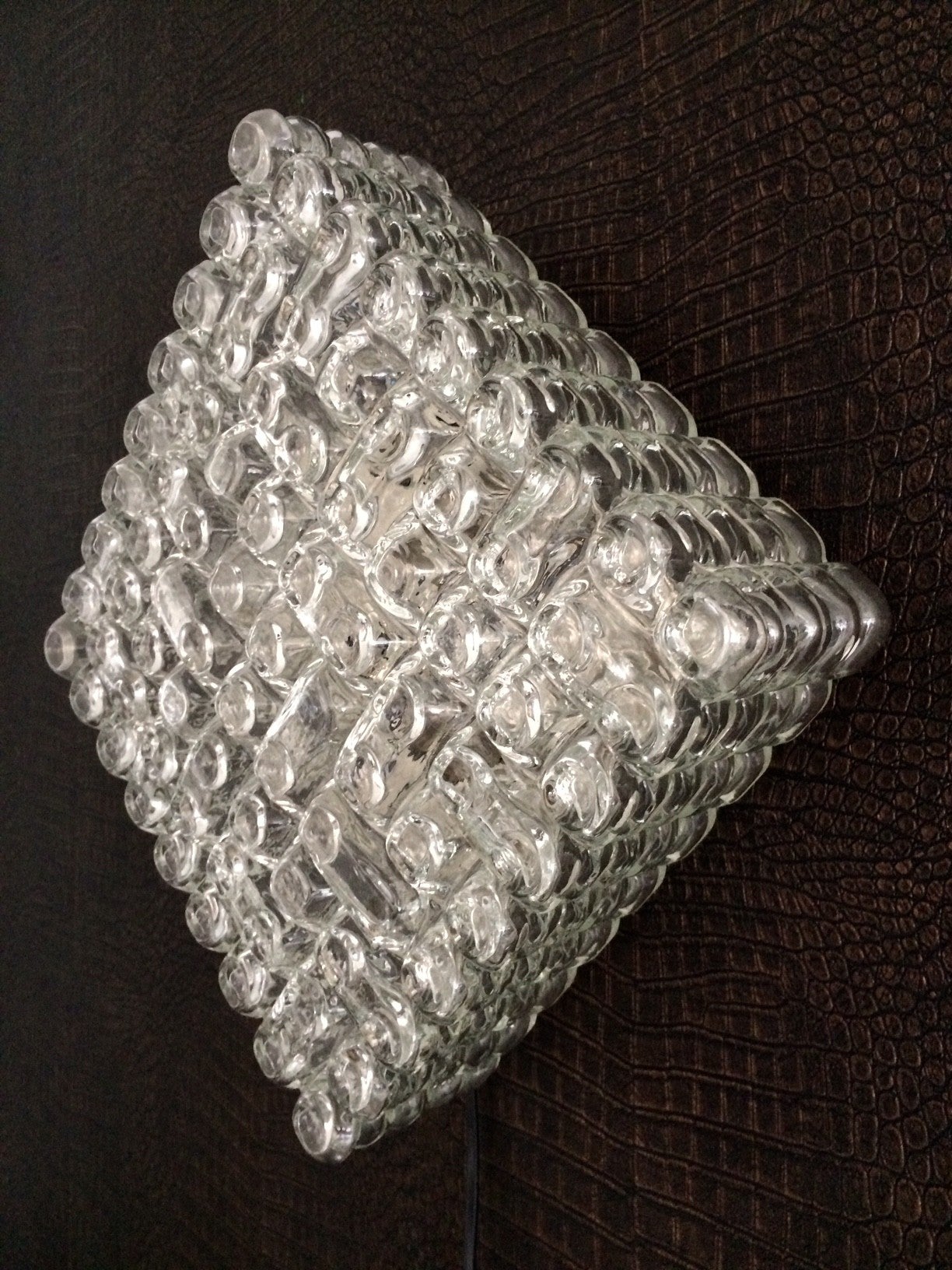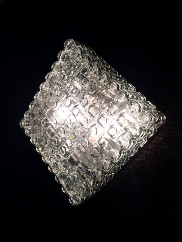 Vintage 1960's Midcentury Modern Design large heavy glass square wall lamp sconce. Made in Germany. In very good condition. 27cm x 27cm x 11cm.
