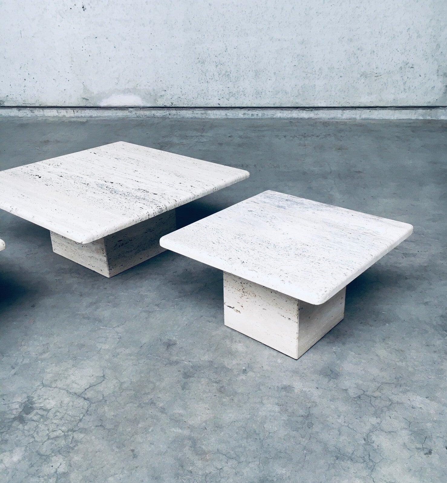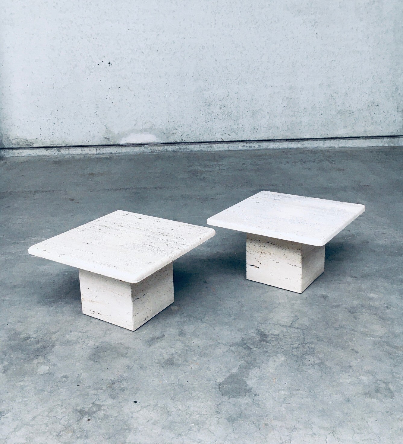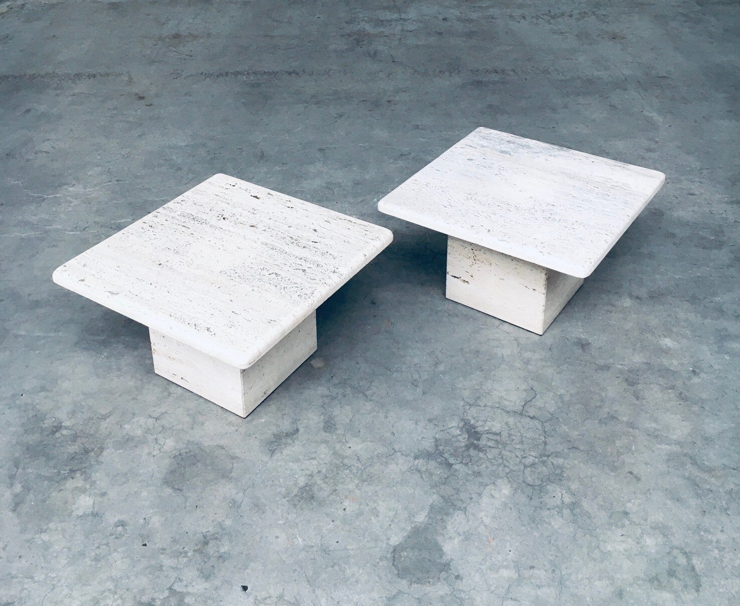 Italian Design Travertine Square Side End Table Set 1970's