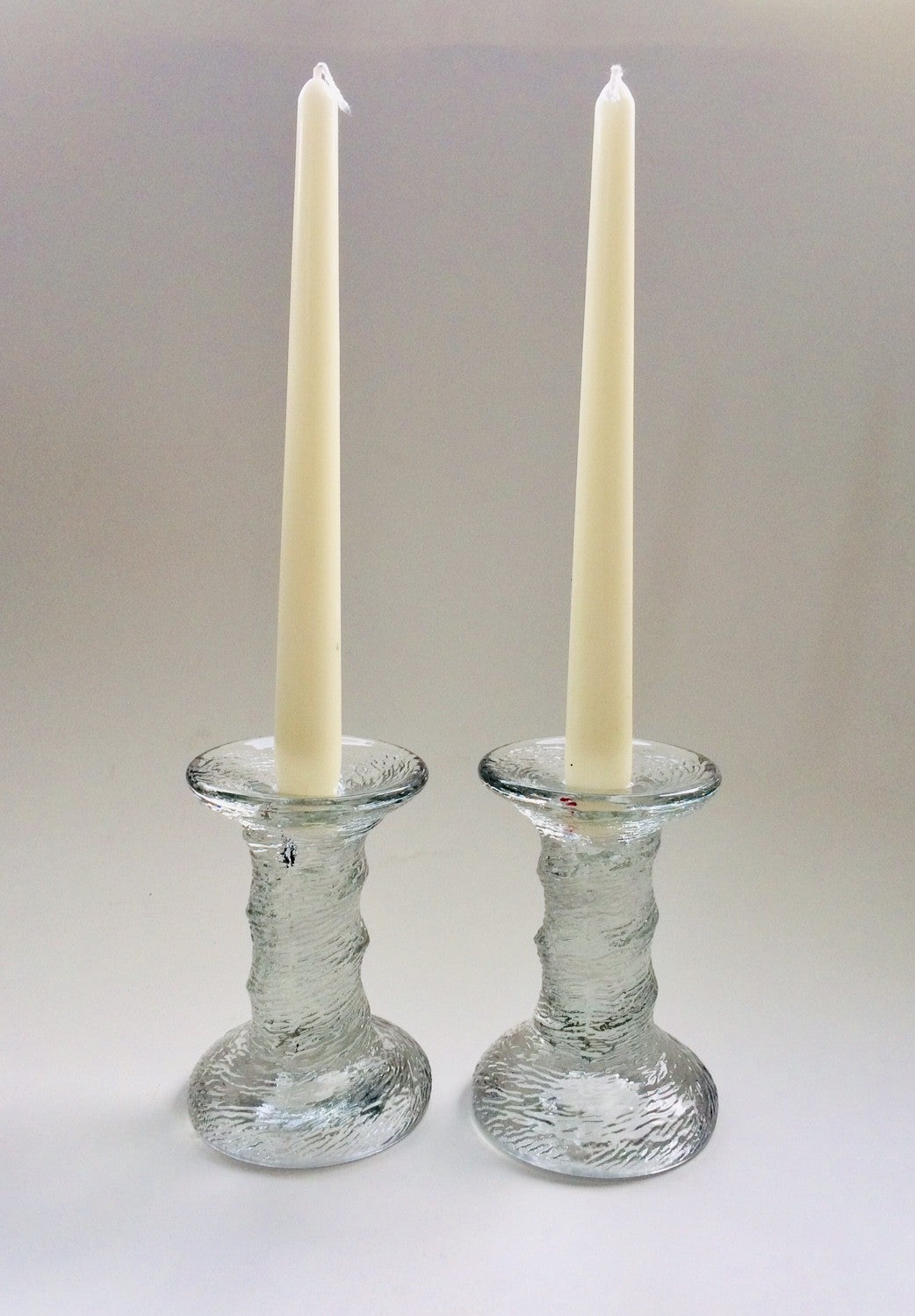 Vintage Midcentury Modern Scandinavian Design Ice Glass Candle Stick set of 2, 1960's Finland. In pristine condition. Each measures: 13,5cm x 8,5cm x 8,5cm.