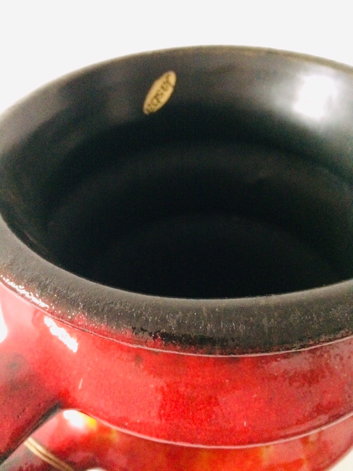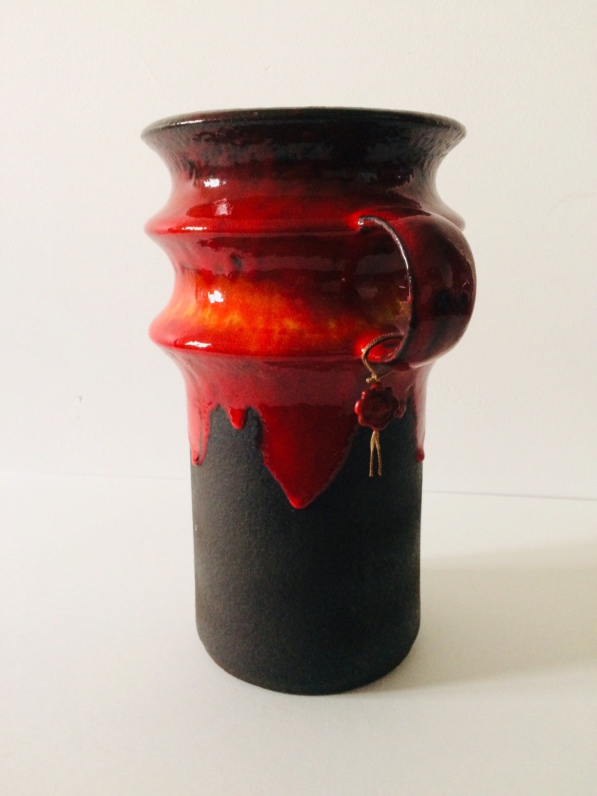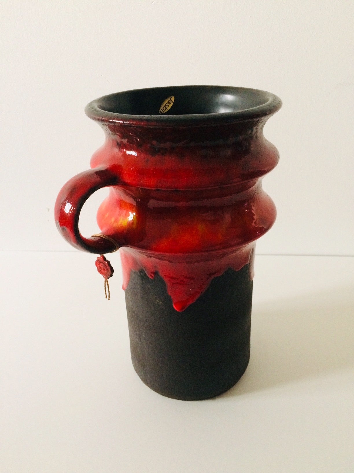 Vintage 1960's Midcentury Modern Design West Germany Art Pottery Jasba Keramik Fat Lava Vase with handle. Complete with brand sticker and label. Model 1223-30. In perfect condition. 31cm x 23cm x 17,5cm.