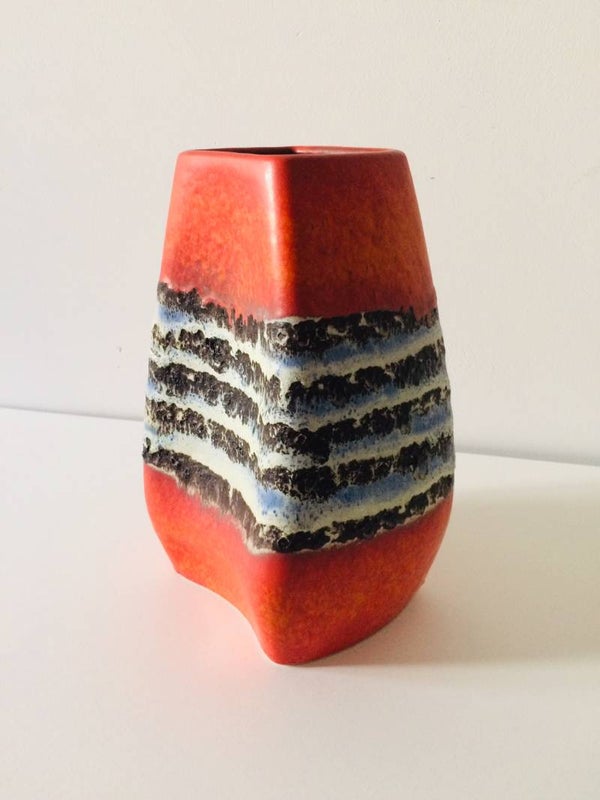 Vintage 1960's Midcentury Modern Design West Germany Art Pottery Dümler & Breiden Keramik Lava Vase - model: Relief 20-30. In perfect condition. Cool dented shape - Rare model. 30,5cm x 20cm x 16cm.