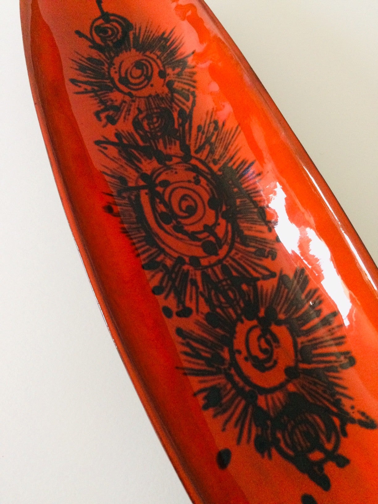 Vintage Midcentury Modern Design Perignem Amphora Art Pottery Studio ceramic dish by F. Sanchez, 1960's Belgium. In perfect condition. Signed on the bottom. 50cm x 14cm x 5,5cm.
