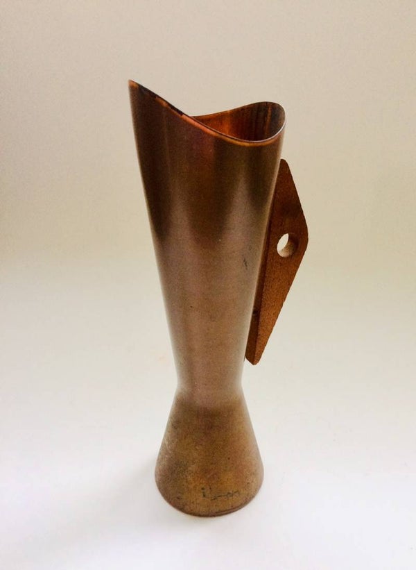 Vintage Midcentury Modern Scandinavian Design copper flower vase by Dahlmann, Denmark, 1960's. Copper vase with teak handle. In very good condition. 25cm x 7cm x 10cm.