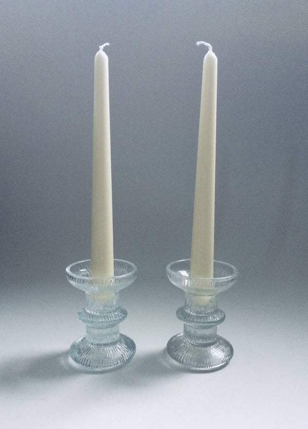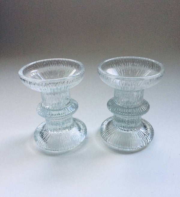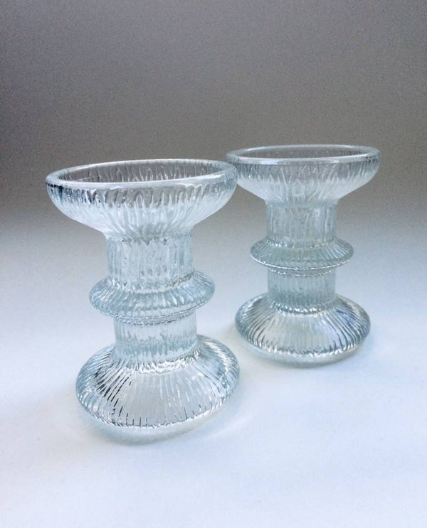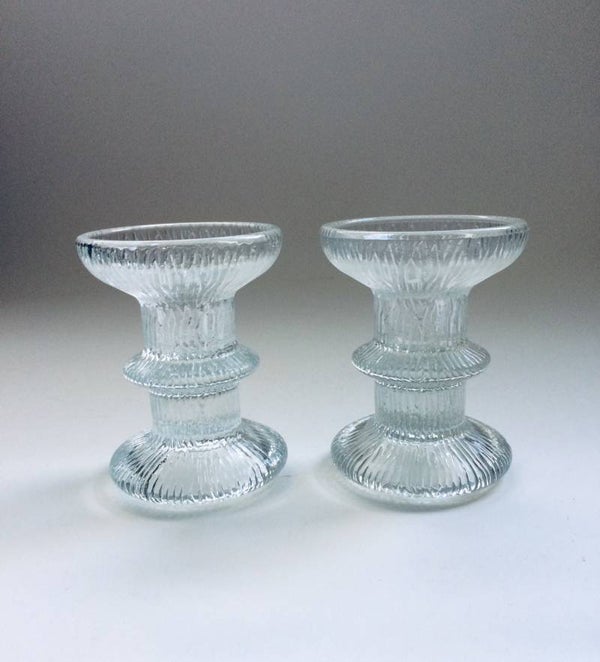 Vintage Midcentury Modern Scandinavian Design Ice Glass candle holder set of 2, Finland, 1970's. Both are in pristine condition. 9,5cm x 7cm x 7cm.