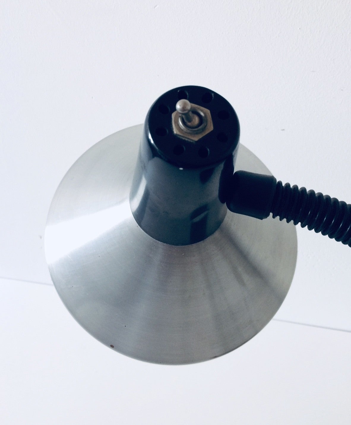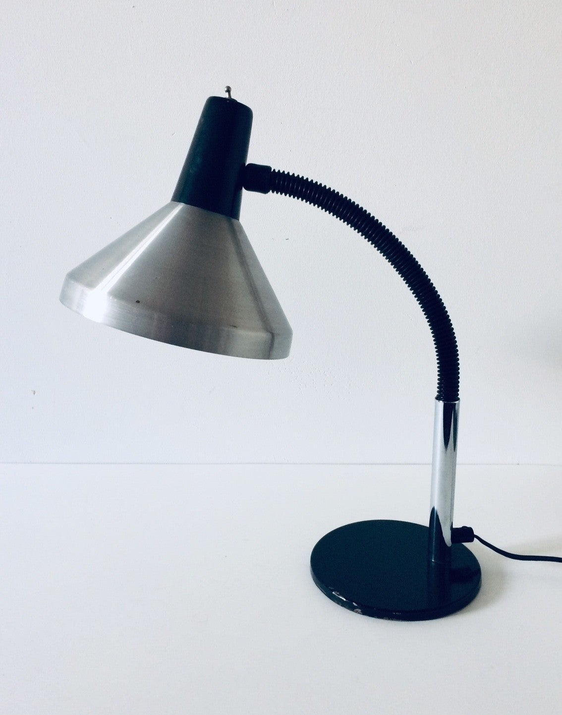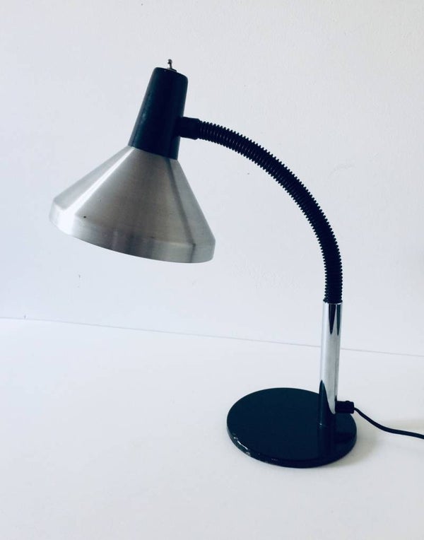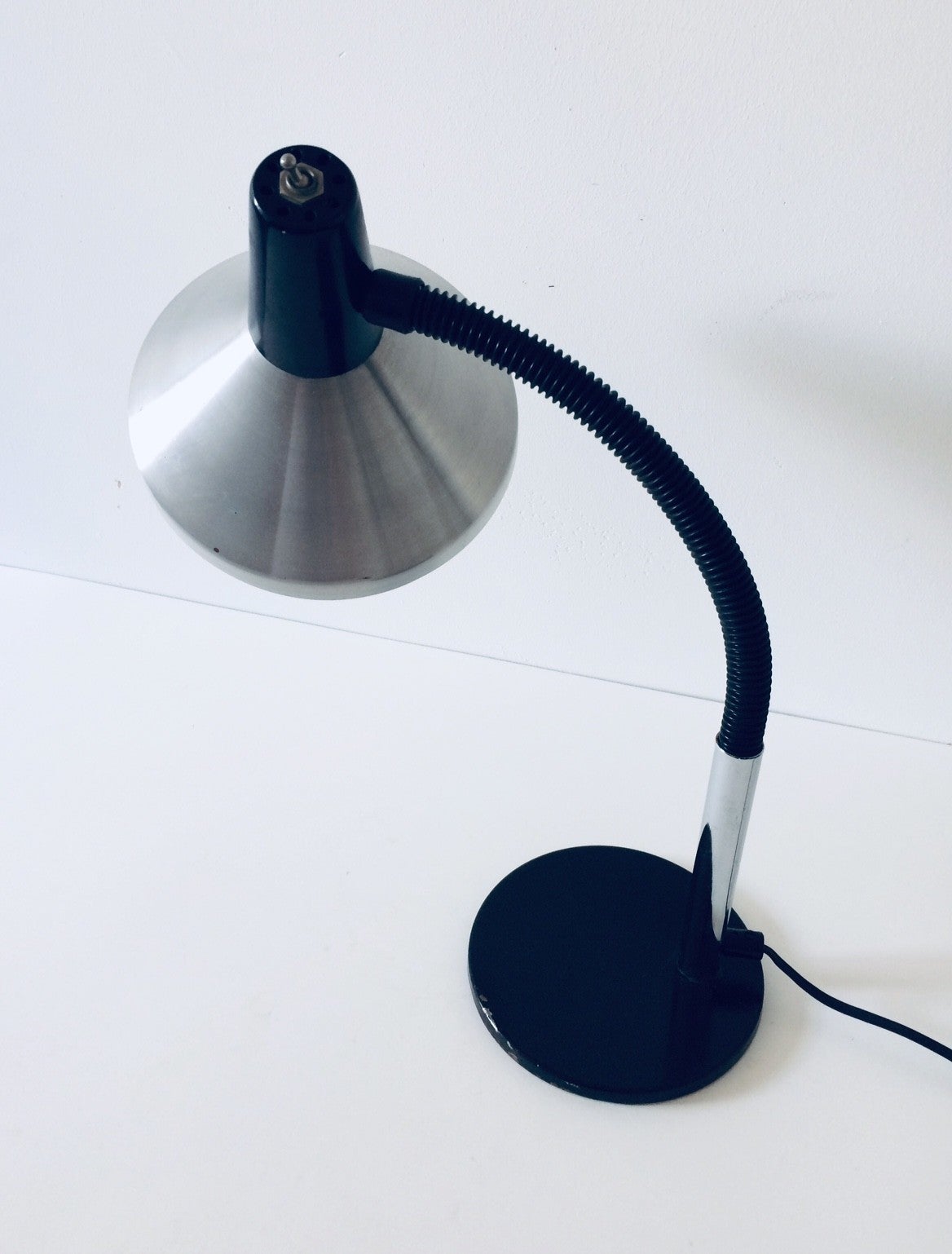 Vintage Midcentury Modern Design adjustable desk lamp by Hala Zeist, Germany 1960's. Sleek design, aluminium shade with built-in light switch. Original label.