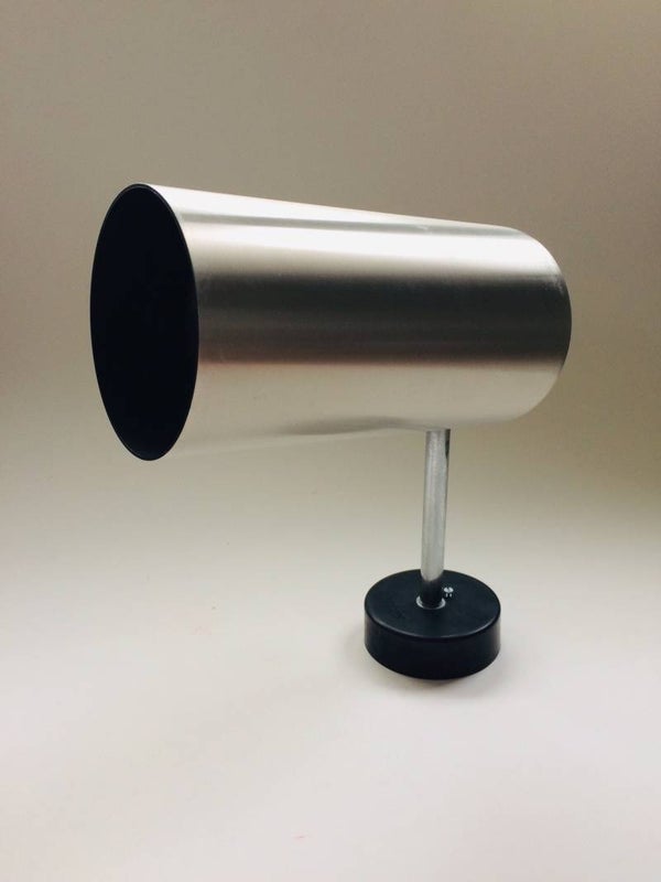 Vintage Midcentury Modern Design Wall Spot Lamp by Staff Leuchten, Germany, 1970's. Aluminium cylinder, matt black inside, backplate and base. Adjustable from 90° to 180° in one direction. Cylinder measures: 20,3cm x 10,5cm x 10,5cm. In very good condition, with normal signs of age.