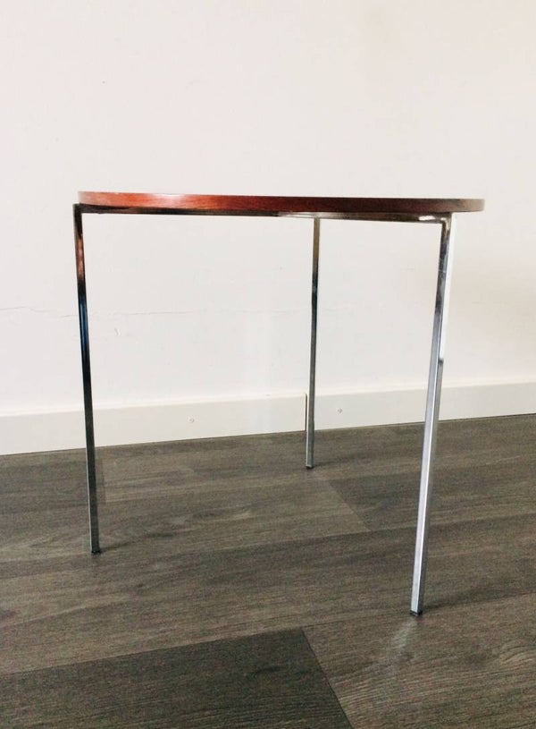 Vintage Midcentury Modern 1960's Design sleek palissander top side table on three chrome metal legs. In the style of Florence Knoll. Made in Germany, 1960's. In good condition. 45cm x 45cm x 43cm.