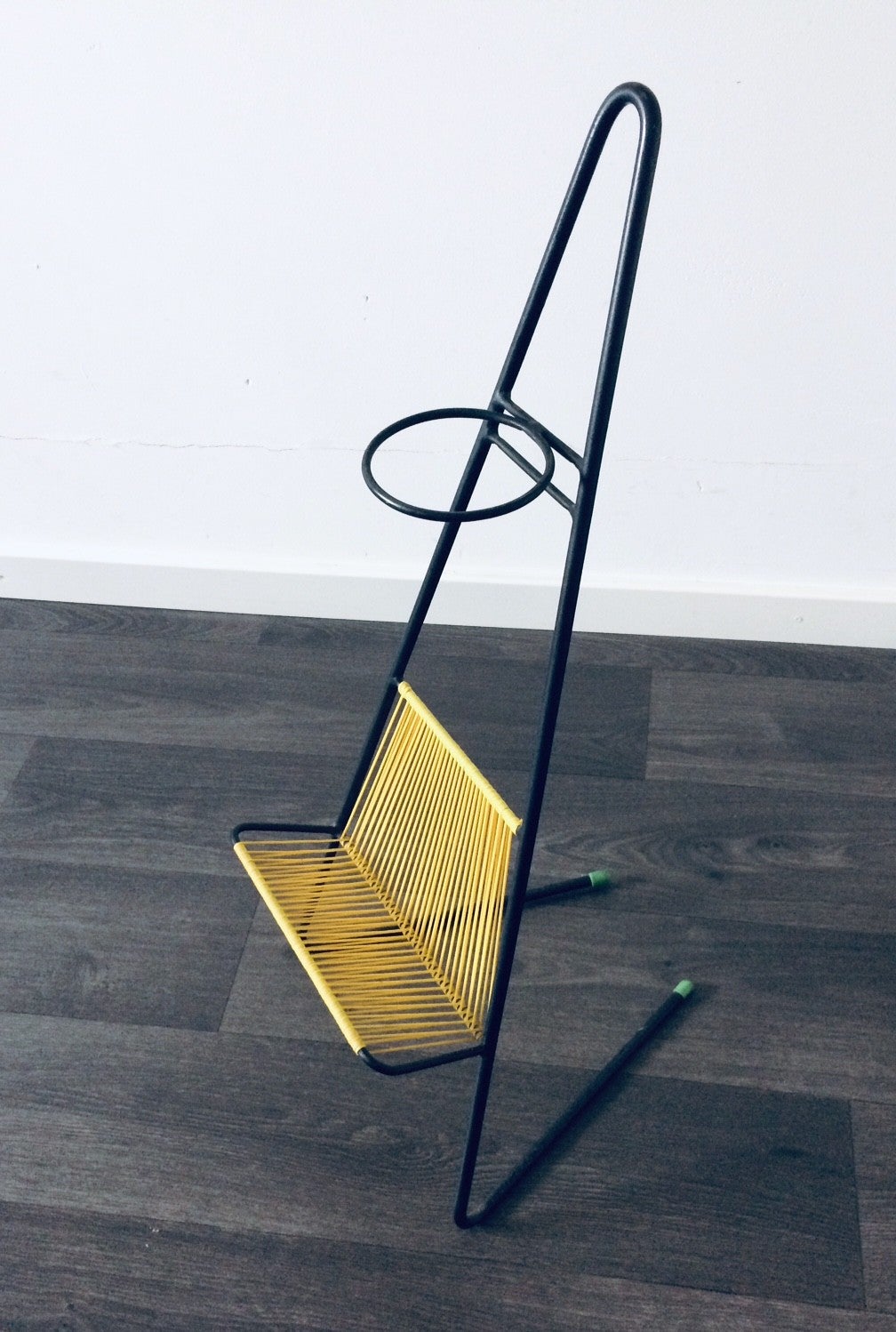 Midcentury Design French Metal & Woven Plastic Newspaper Stand 1950's