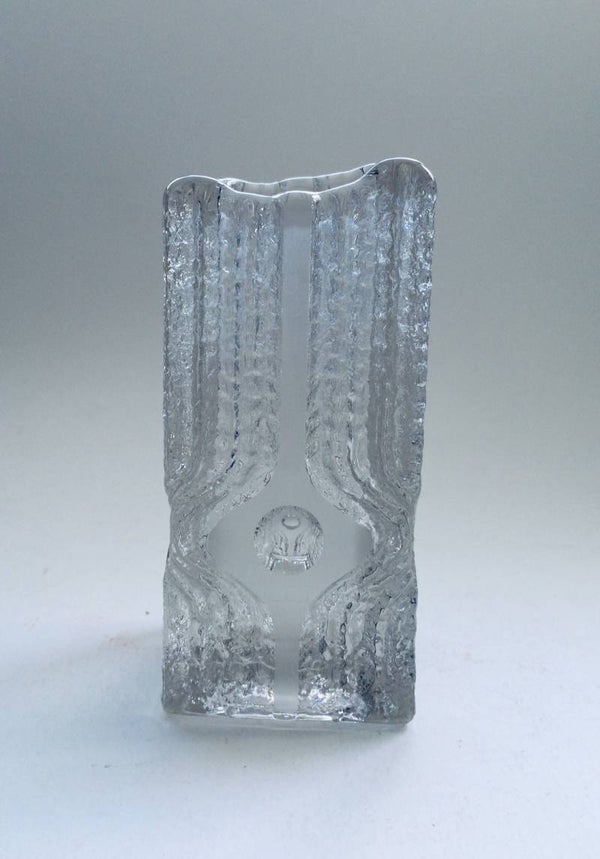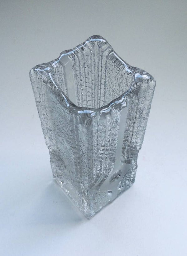 Vintage Midcentury Modern Design Art Glass, Ice Glass Melting Vase by Nybro Glasbruk, Sweden 1970's. Wonderfull heavy art glass vase with 2 grounded sides. A Rare piece. 16cm x 7cm x 7cm.