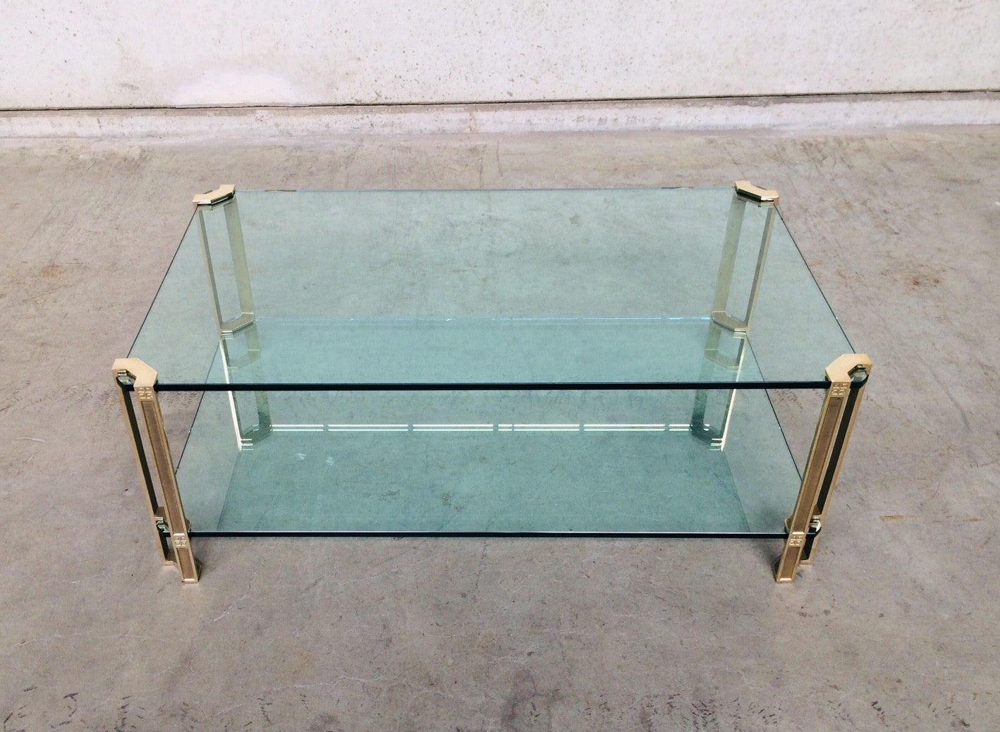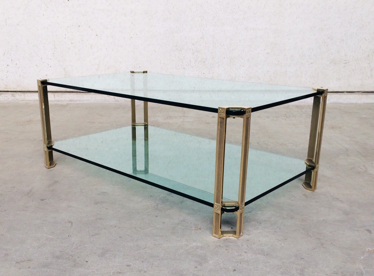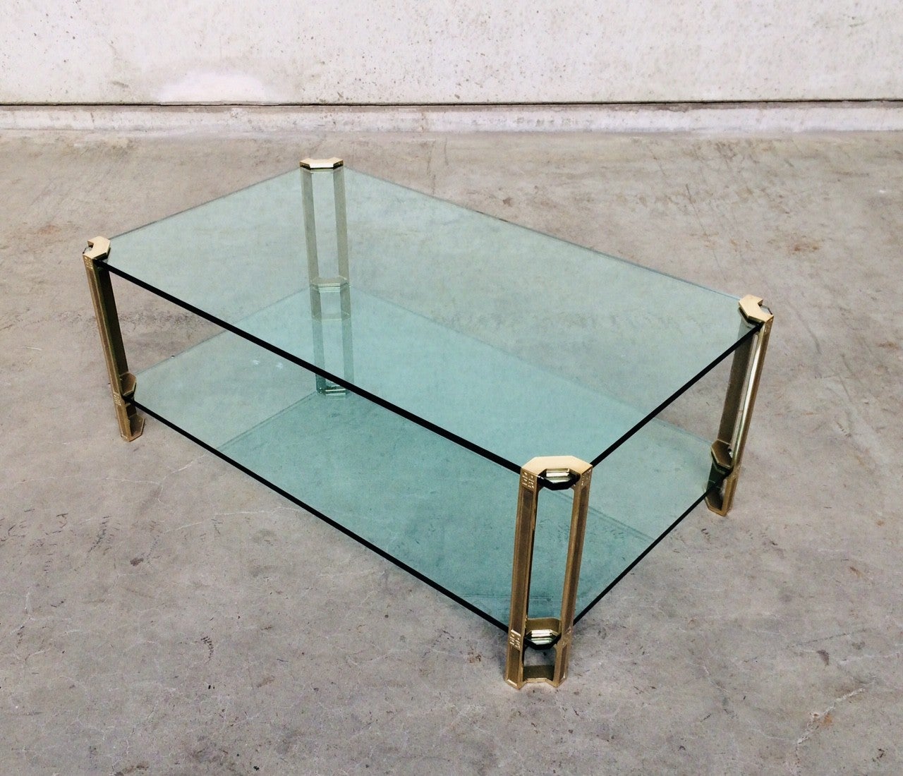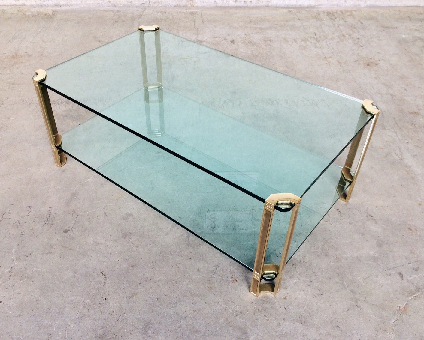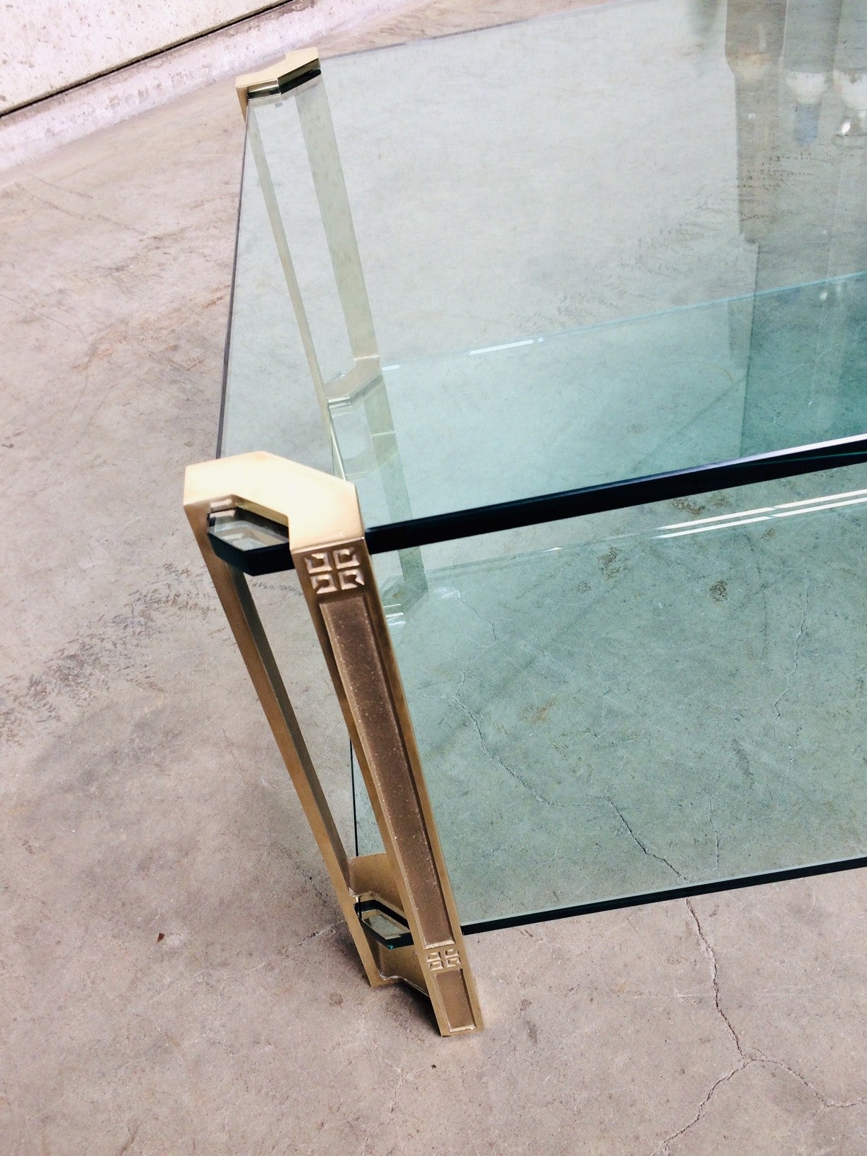 MCM Design Large Glass & Brass Side Table by Peter Ghyczy 1970's
