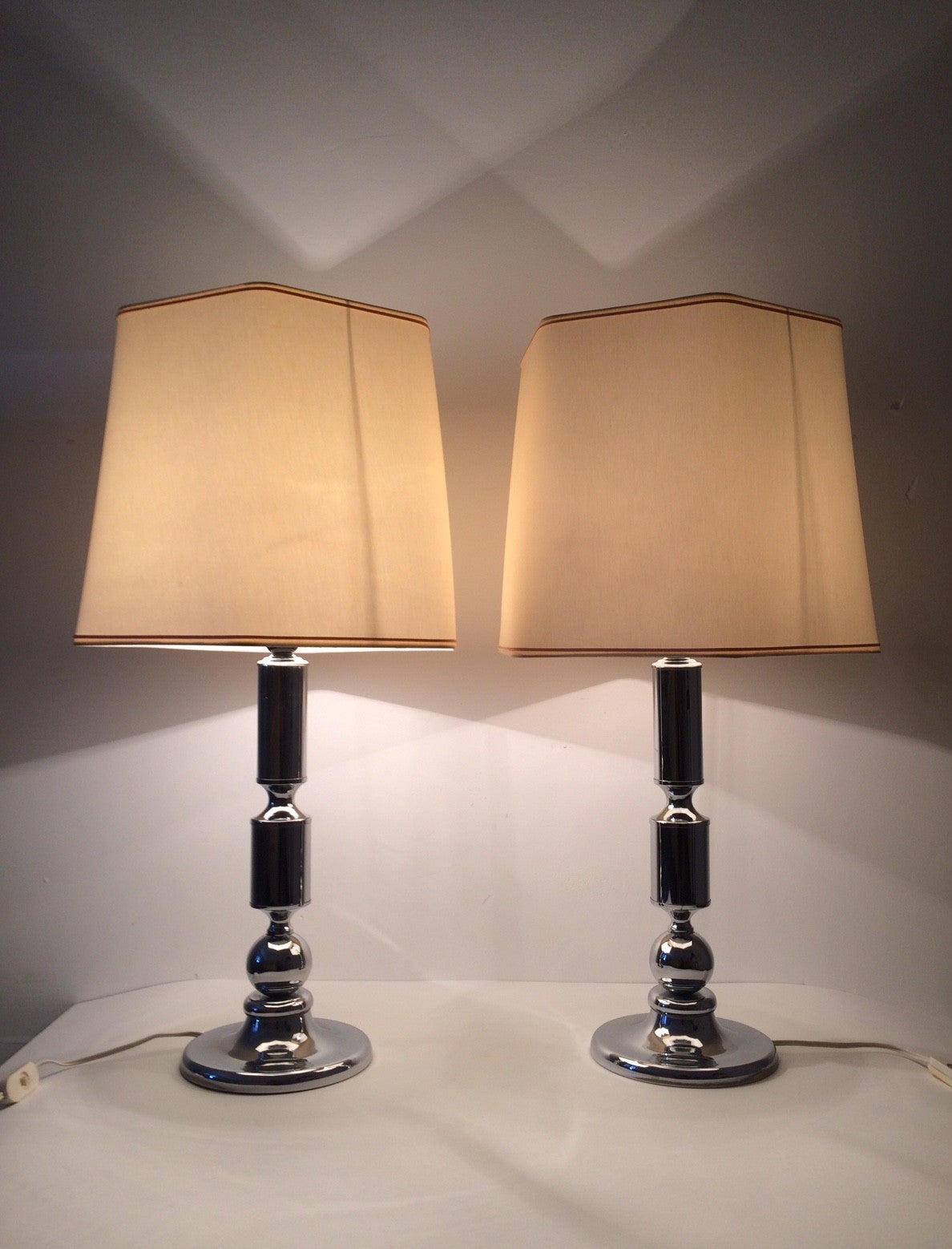 Midcentury Modern Design Chrome Metal Table Lamp set 1970's