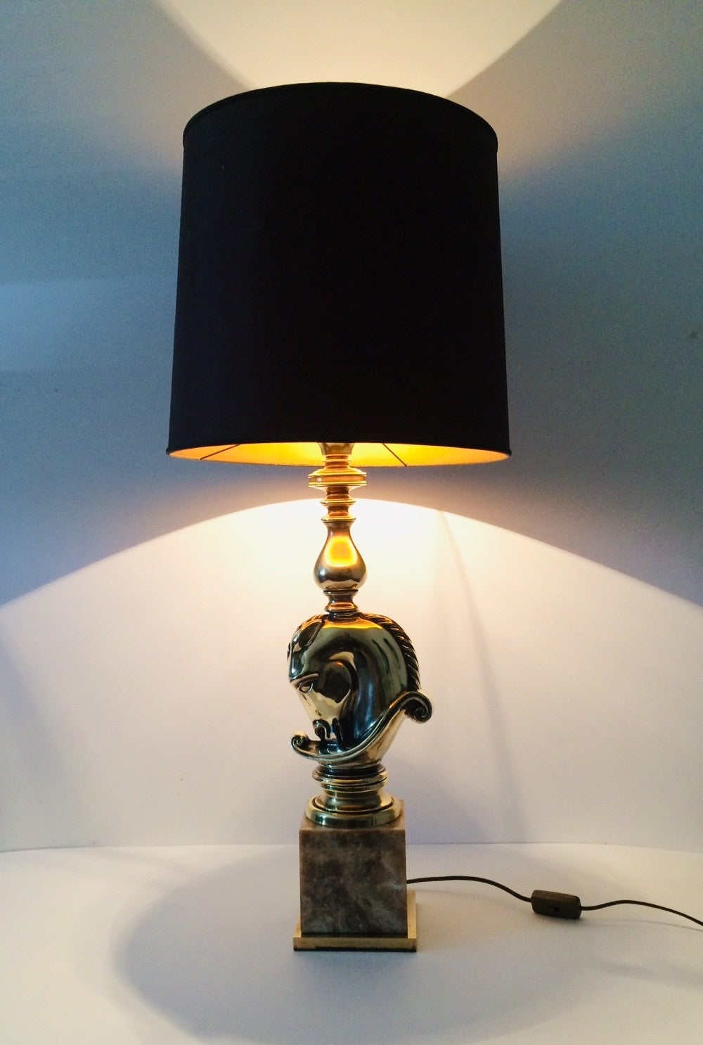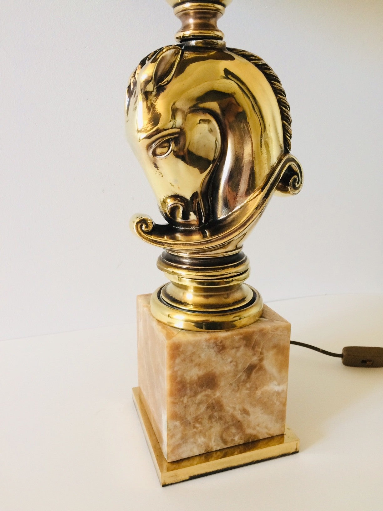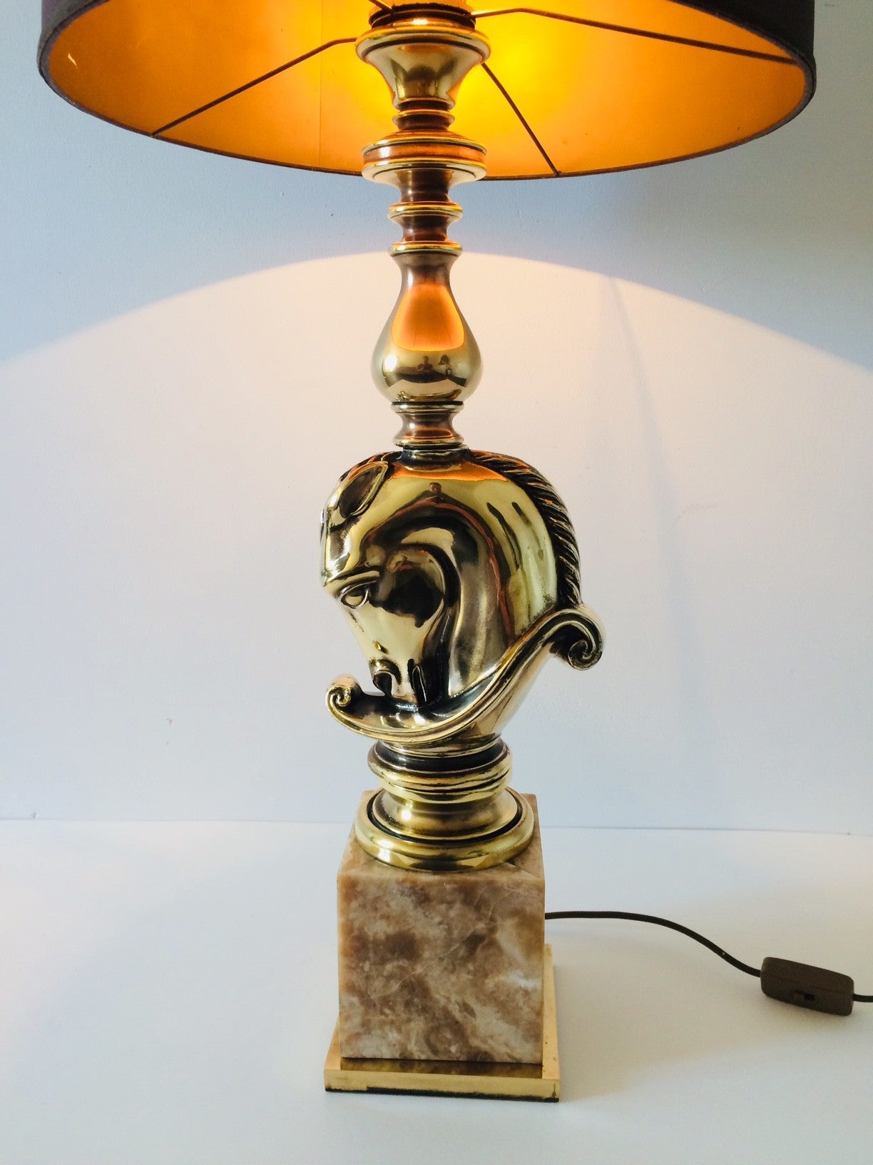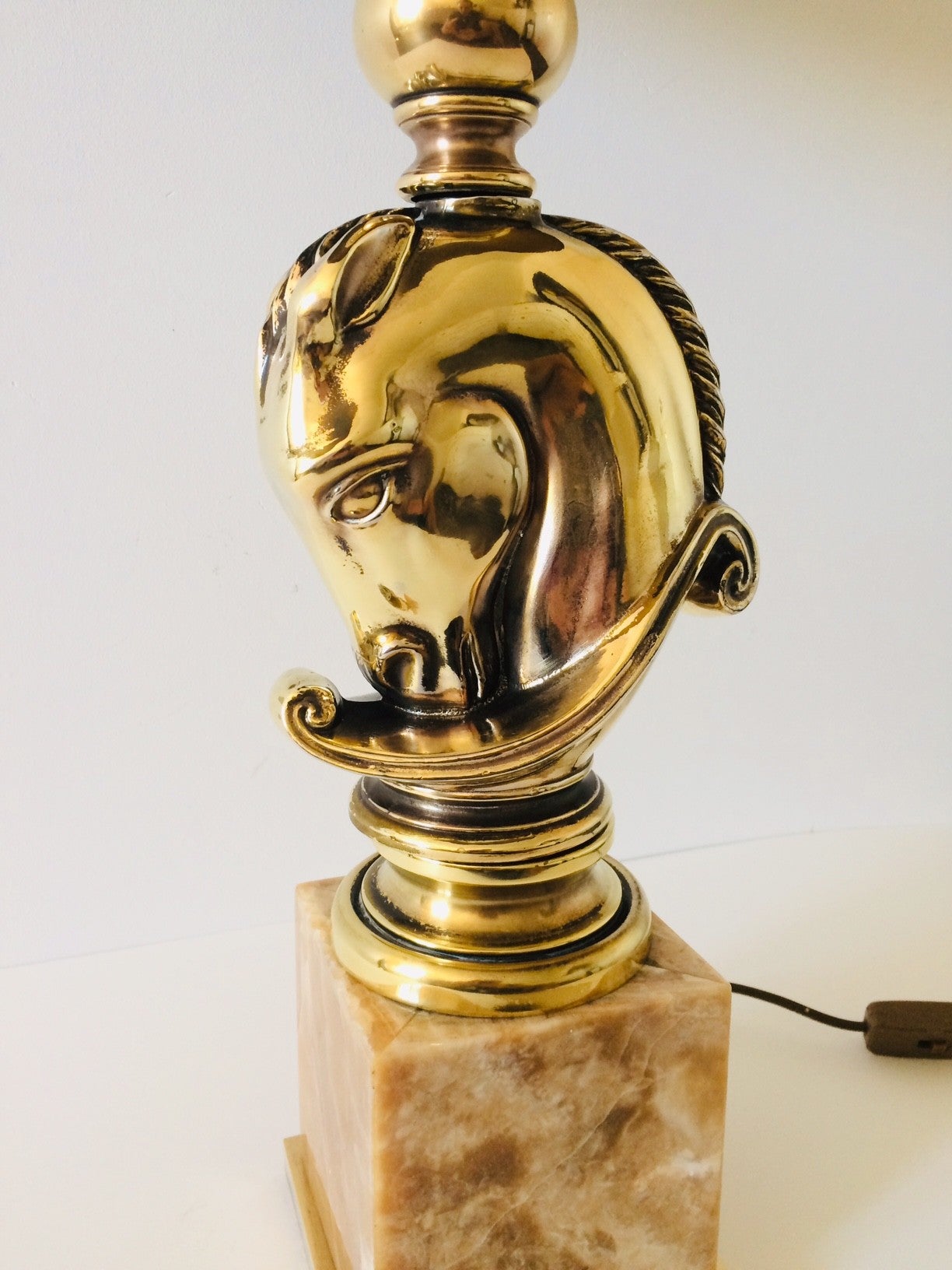 Hollywood Regency Design Brass Horse Head Table lamp by Deknudt 1970's