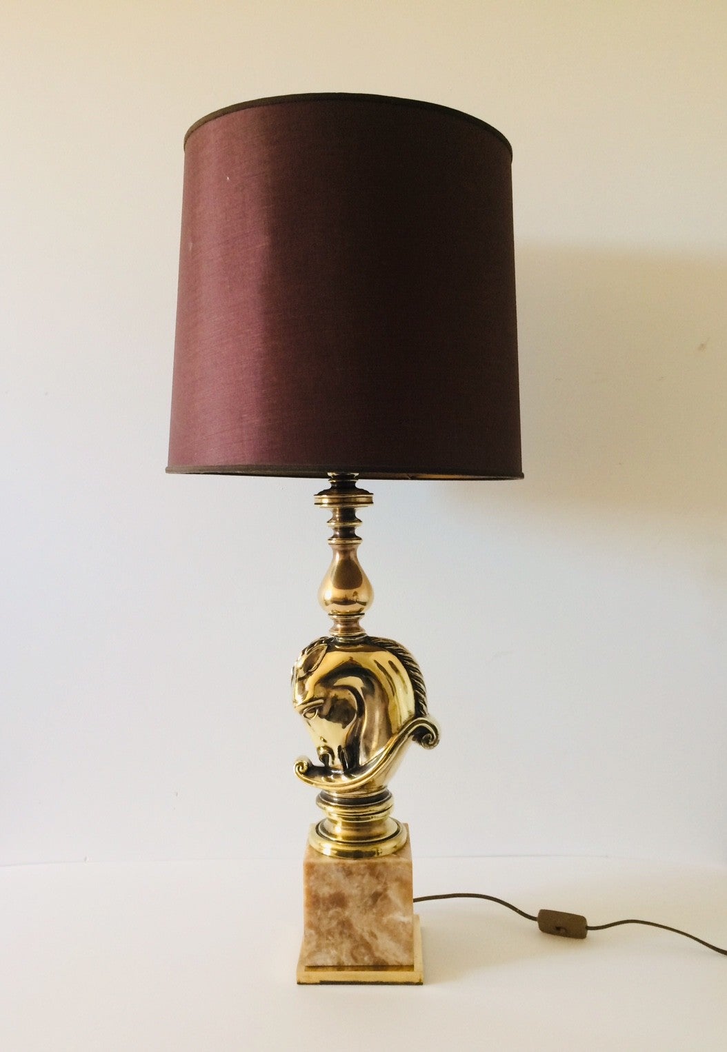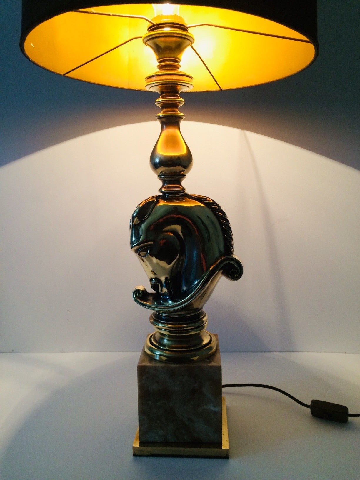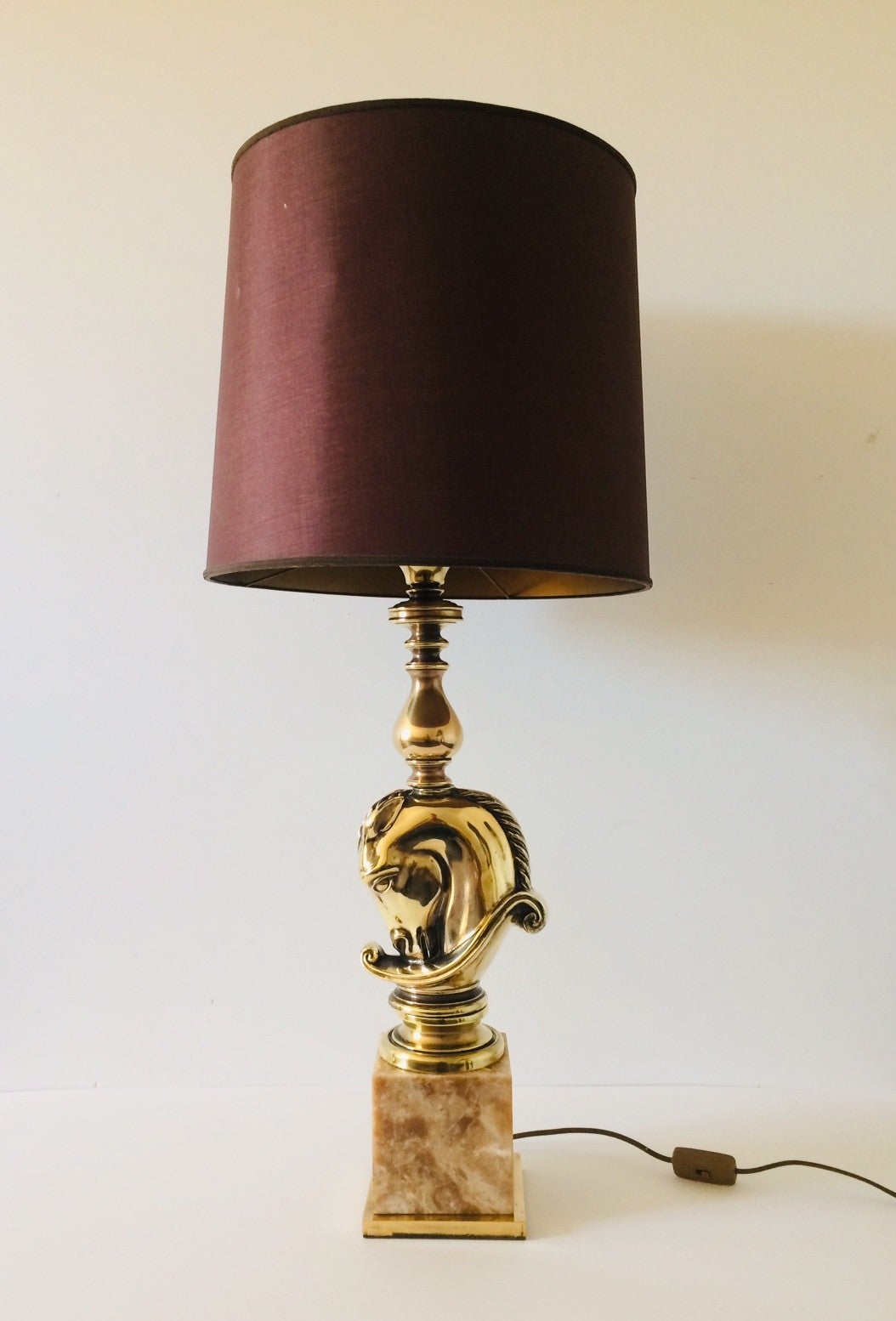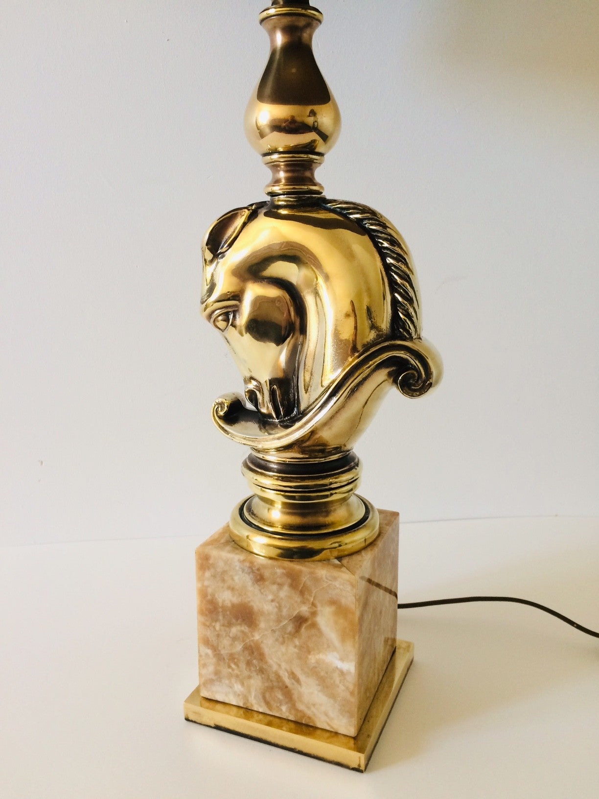 Hollywood Regency Design Brass Horse Head Table lamp by Deknudt 1970's