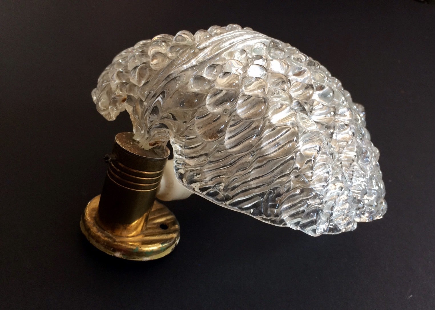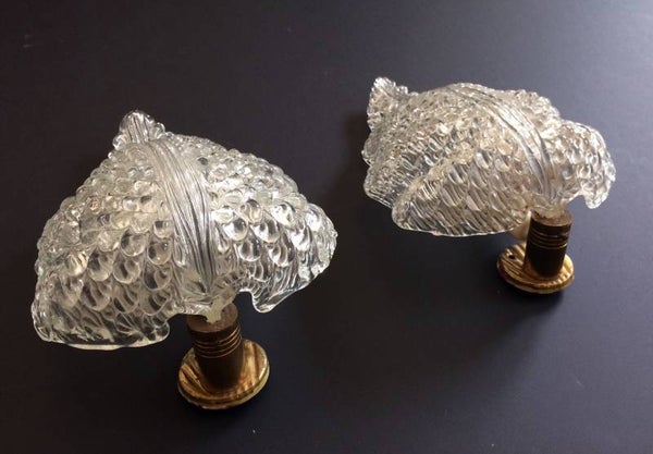 Vintage Barovier & Toso Leaf Sconces Glass Wall Lamp set, Murano Italy 1950's