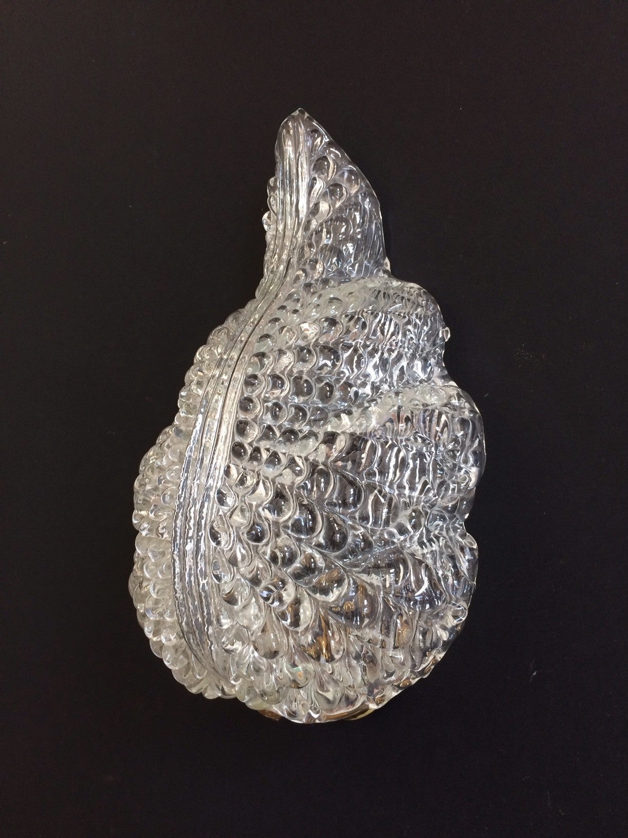 Vintage Midcentury Modern design Leaf Sconces Glass wall lamp set of 2 lights by Barovier & Toso, Murano, Italy 1940's - 50's. Glass wall sconce lamp in Leaf shape. Both are in very good condition. With original brass fittings. Needs rewiring. 30cm x 18cm x 13cm.