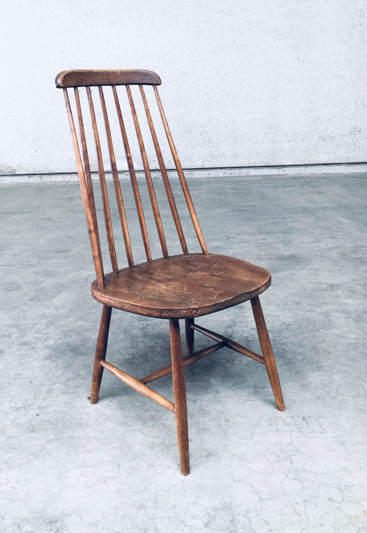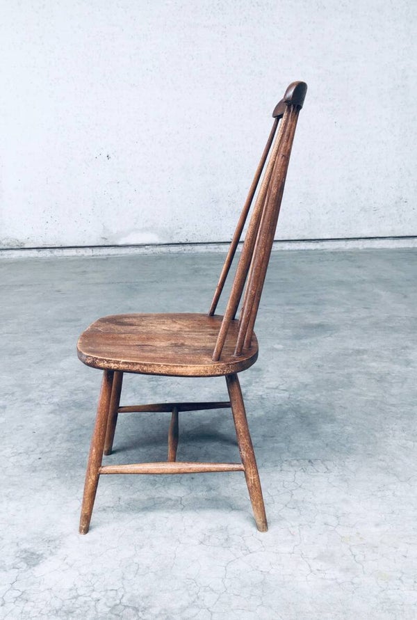 Wabi Sabi Design Oak Spindle Back Chairs, France 1940's