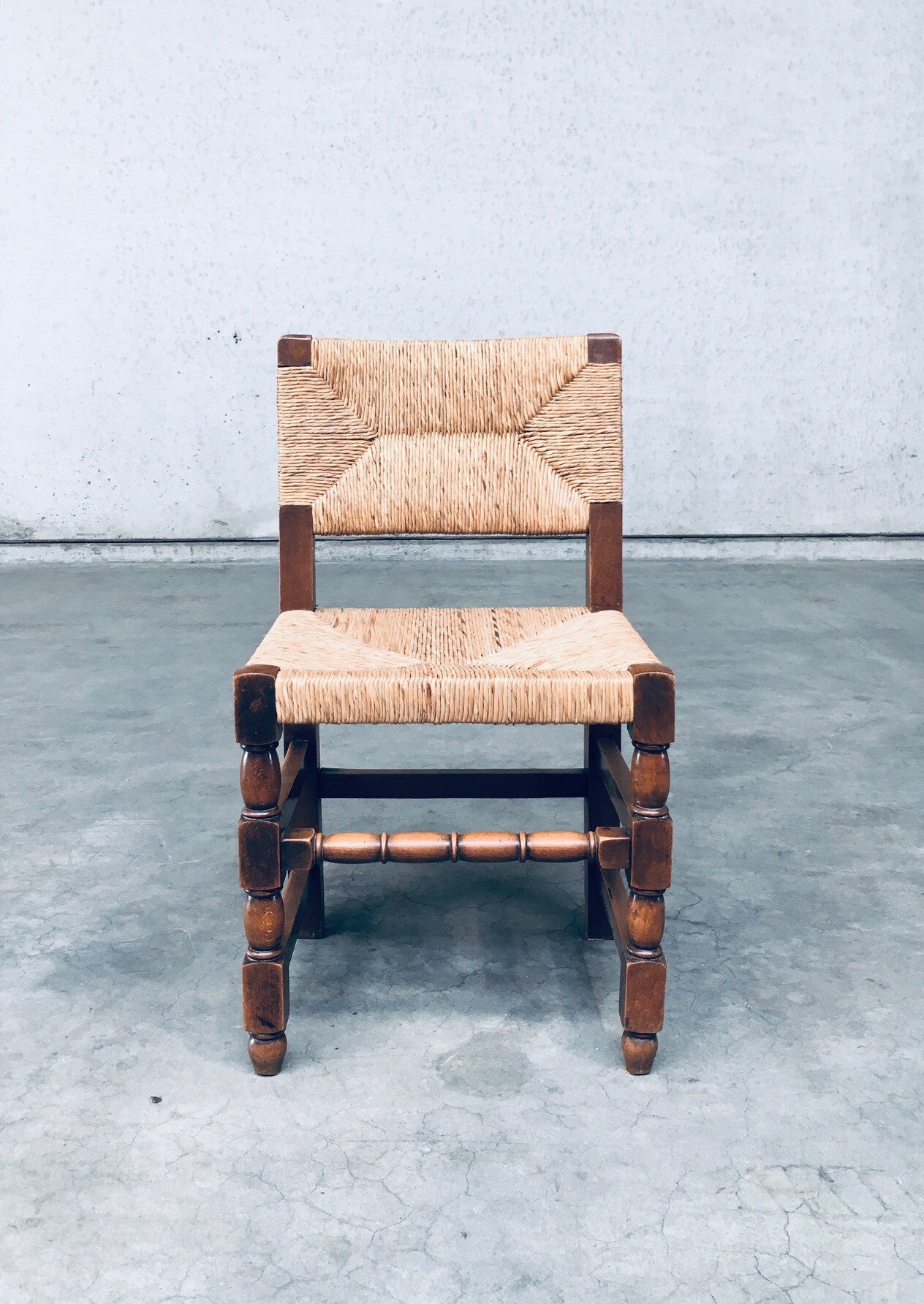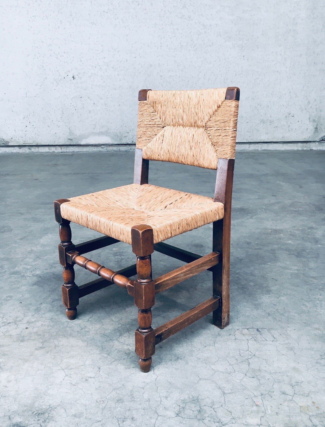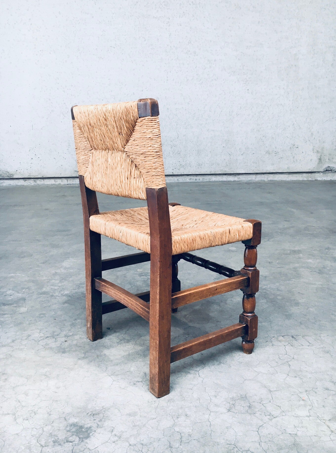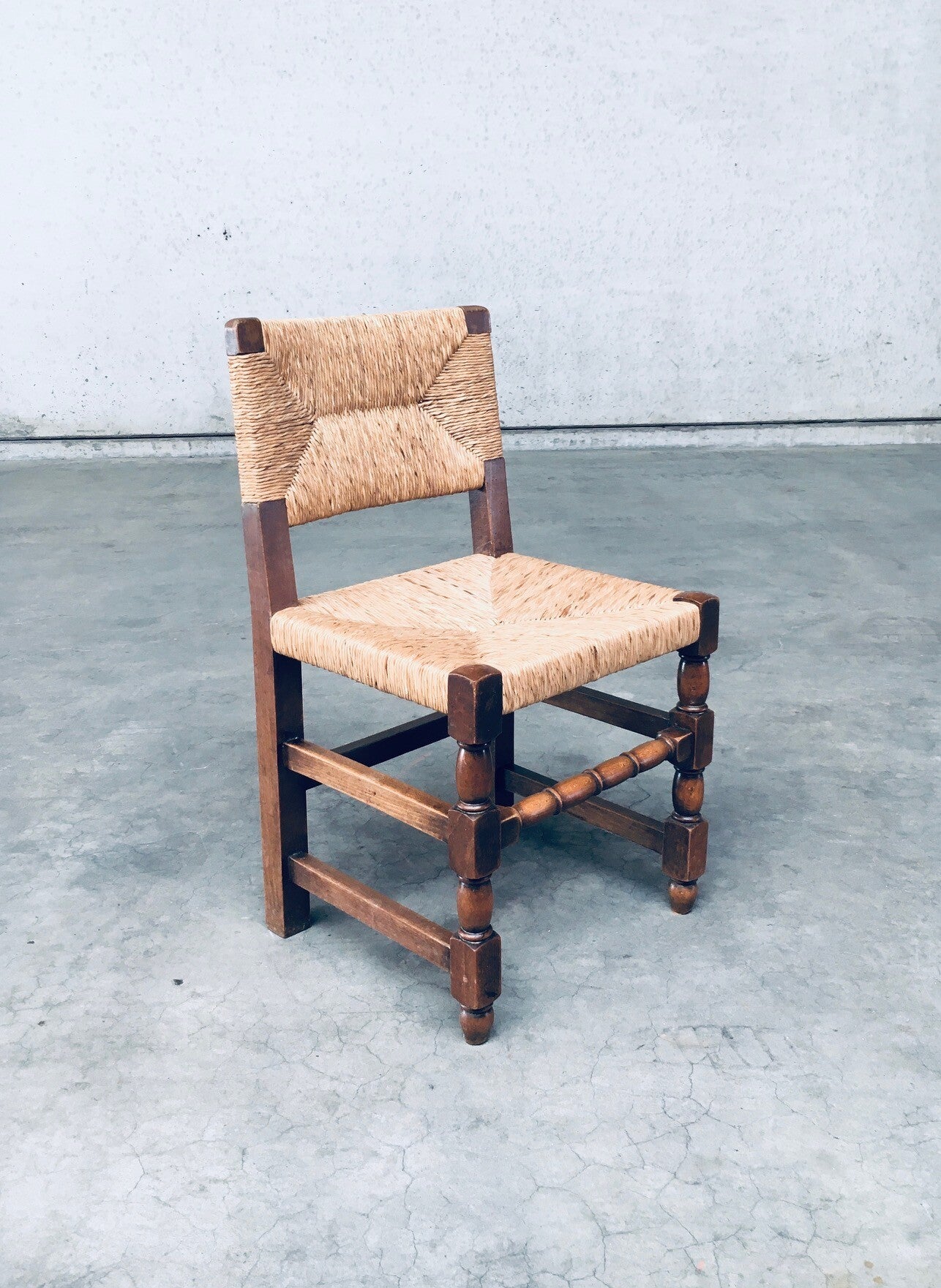Tudor Style Design Oak & Rush Dining Chair set, Belgium 1930's