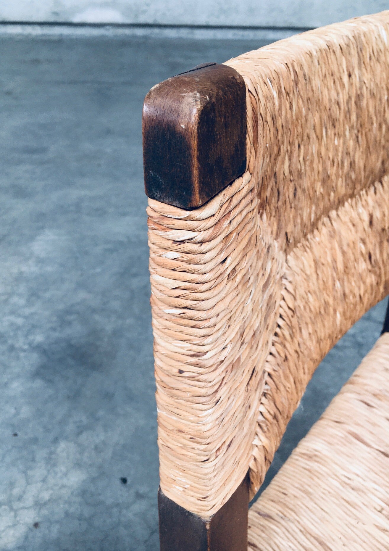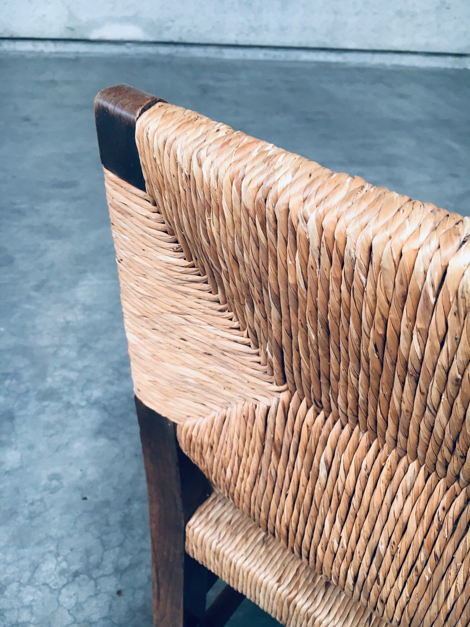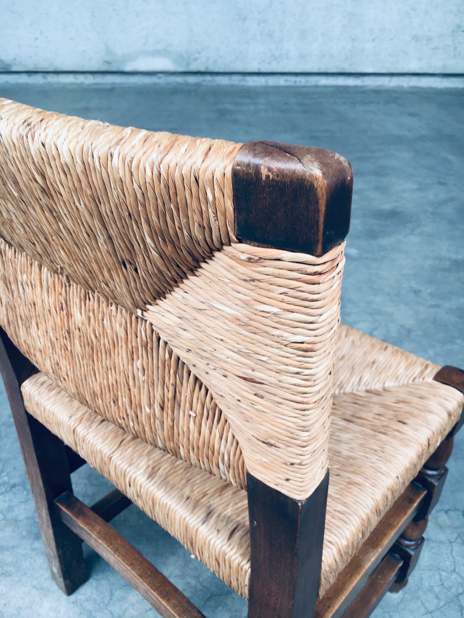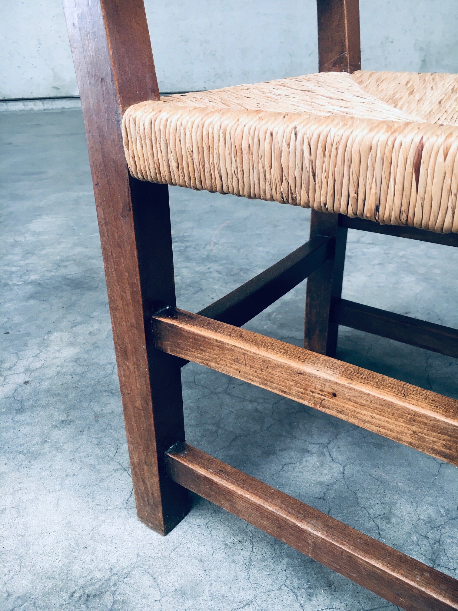 Tudor Style Design Oak & Rush Dining Chair set, Belgium 1930's