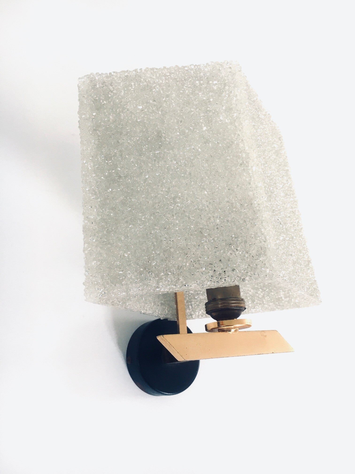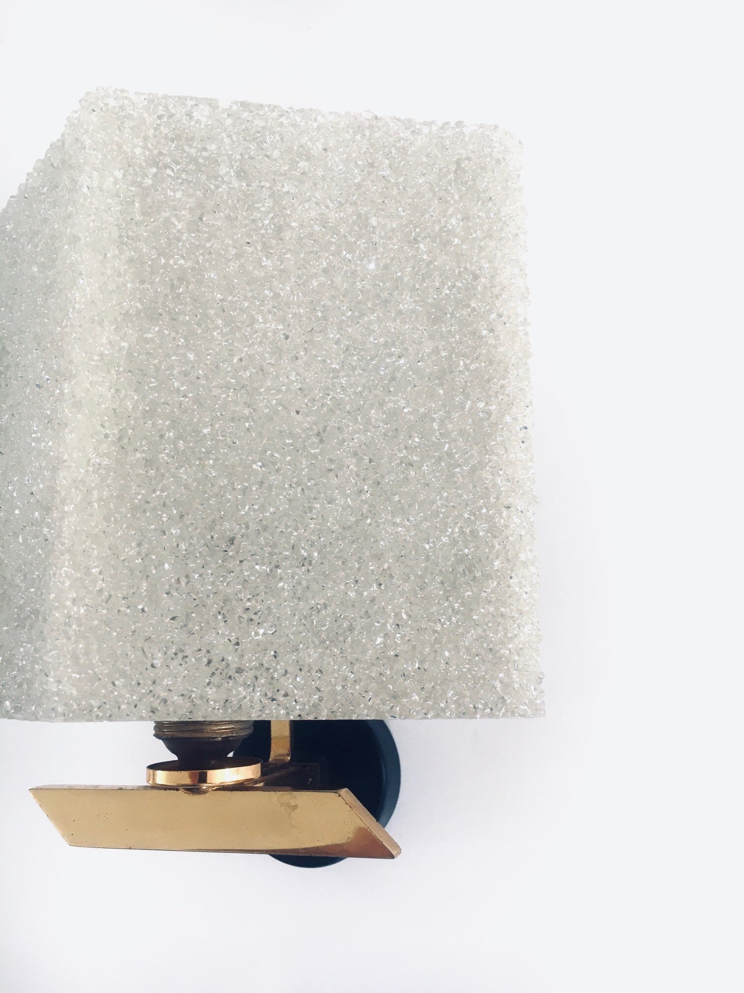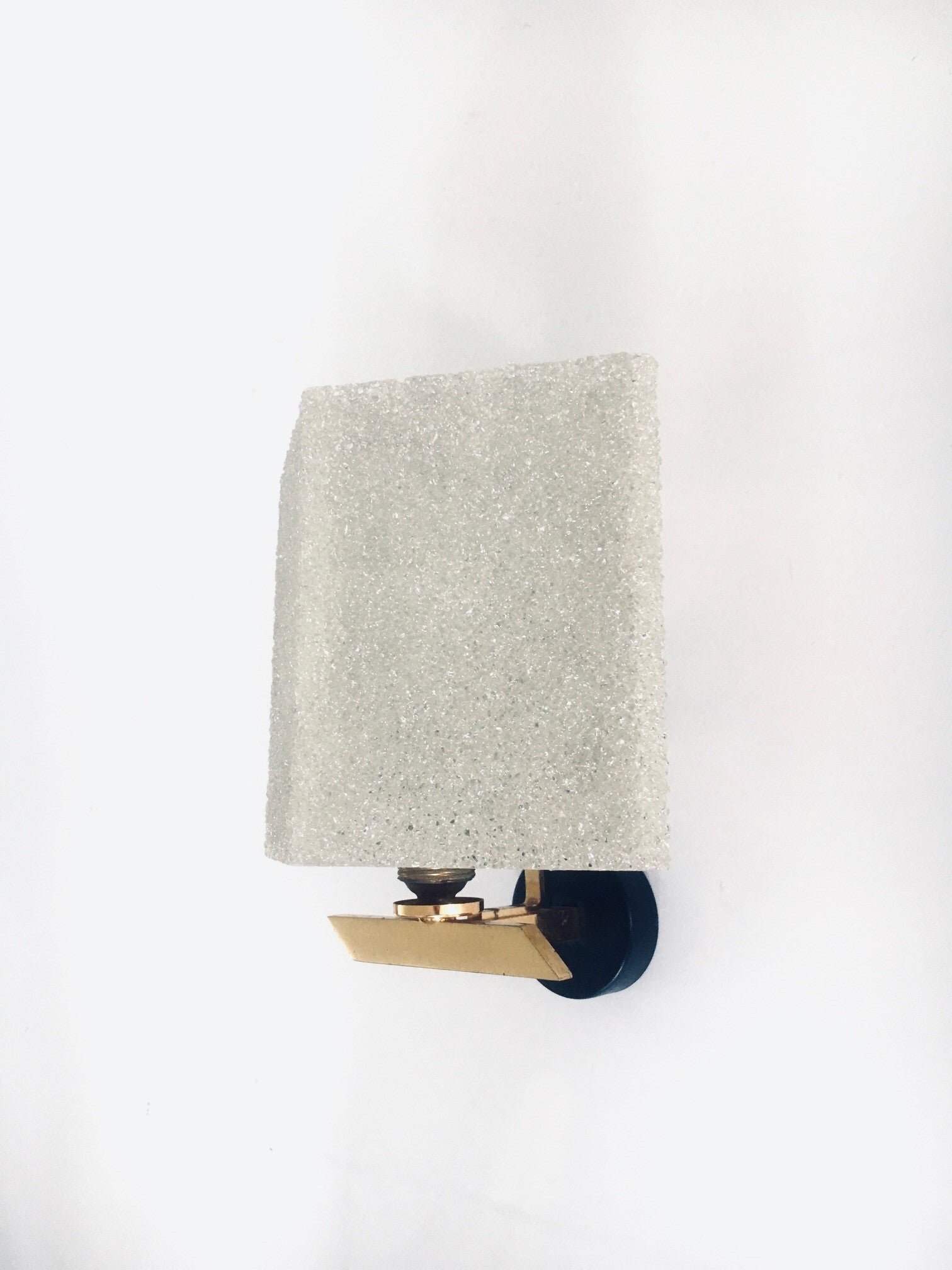Vintage Midcentury French Design Flush Mounted Wall Lamp Set. Made in France, 1960's period. Sugar plastic lamp shades on brass and black lacquered metal base. They both are in very good, all original condition. Each measures 22cm x 19cm x 15cm.