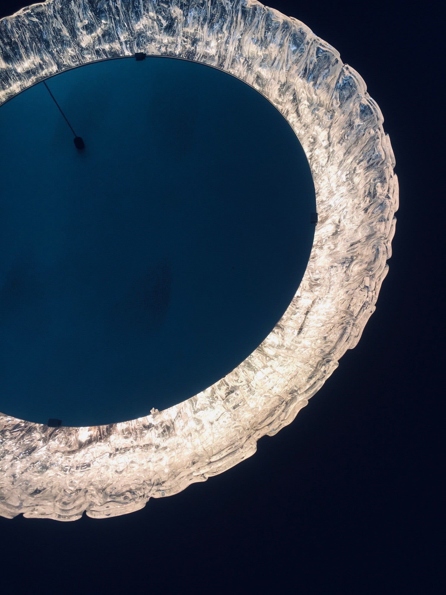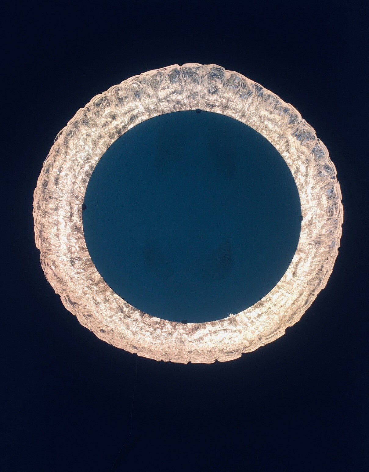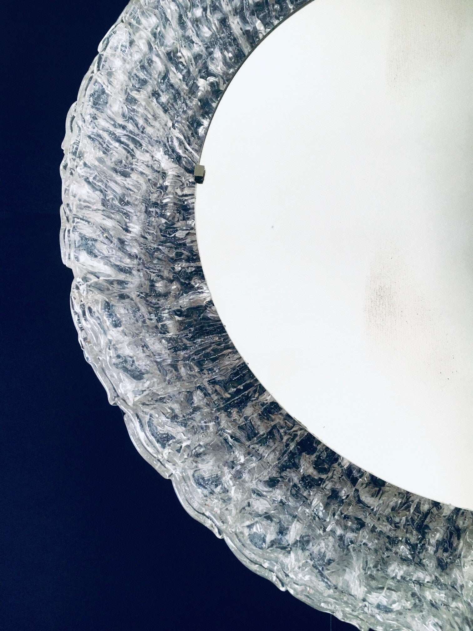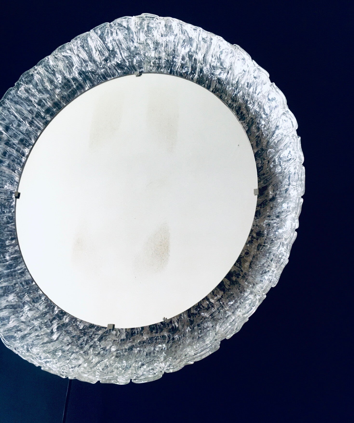 Vintage Midcentury Design Lucite Wall Mirror with Backlight by Egon Hillebrand for Hillebrand Leuchten. Made in Germany, 1970's period. Large round mirror with lucite plastic ice structure floating back which can be lit up. The mirror has nice aging. The lucite back ring comes in perfect condition. Measures 68cm x 14cm x 68cm.