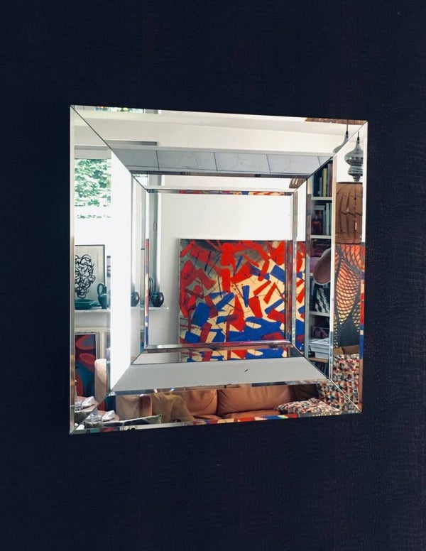 Postmodern Design Square Facet Cut Wall Mirror by Deknudt, Belgium 1970's