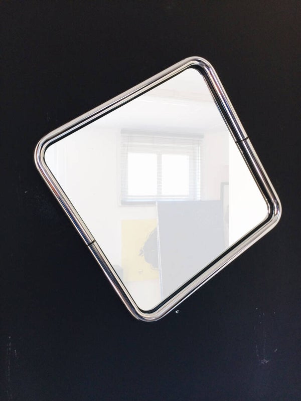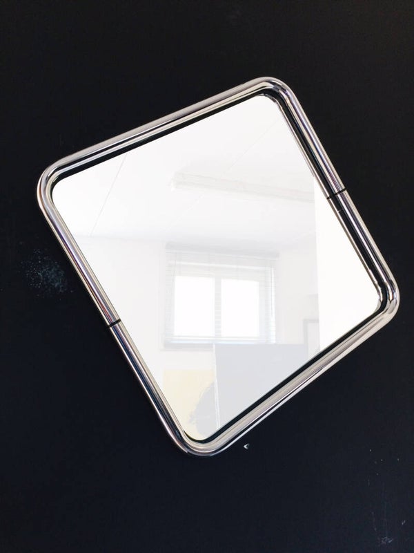 Vintage Midcentury Modern 1970's Design chrome tube frame square mirror. You can hang it straight or slanted. In very good condition. Measures 60cm x 60cm x 4,5cm.