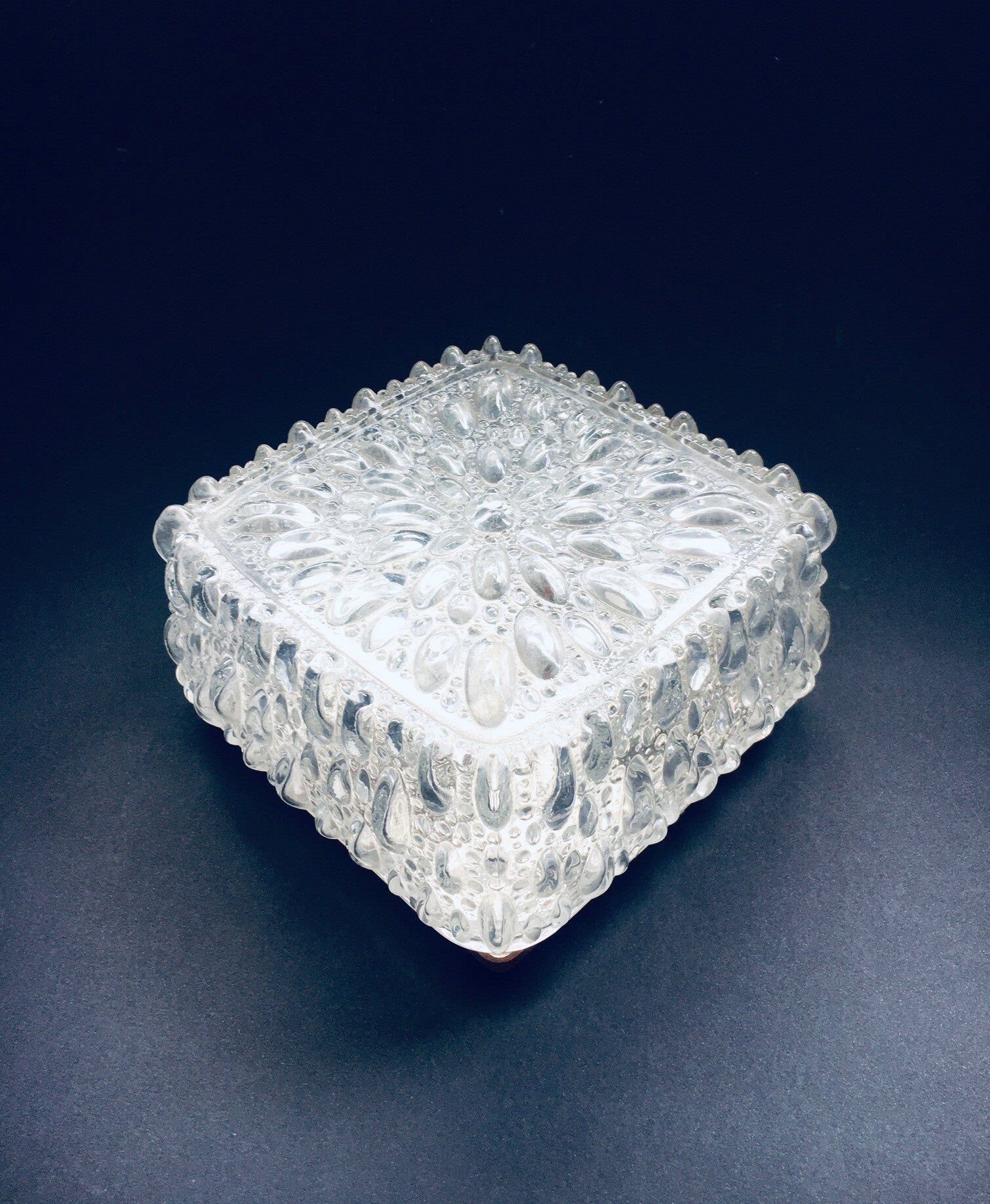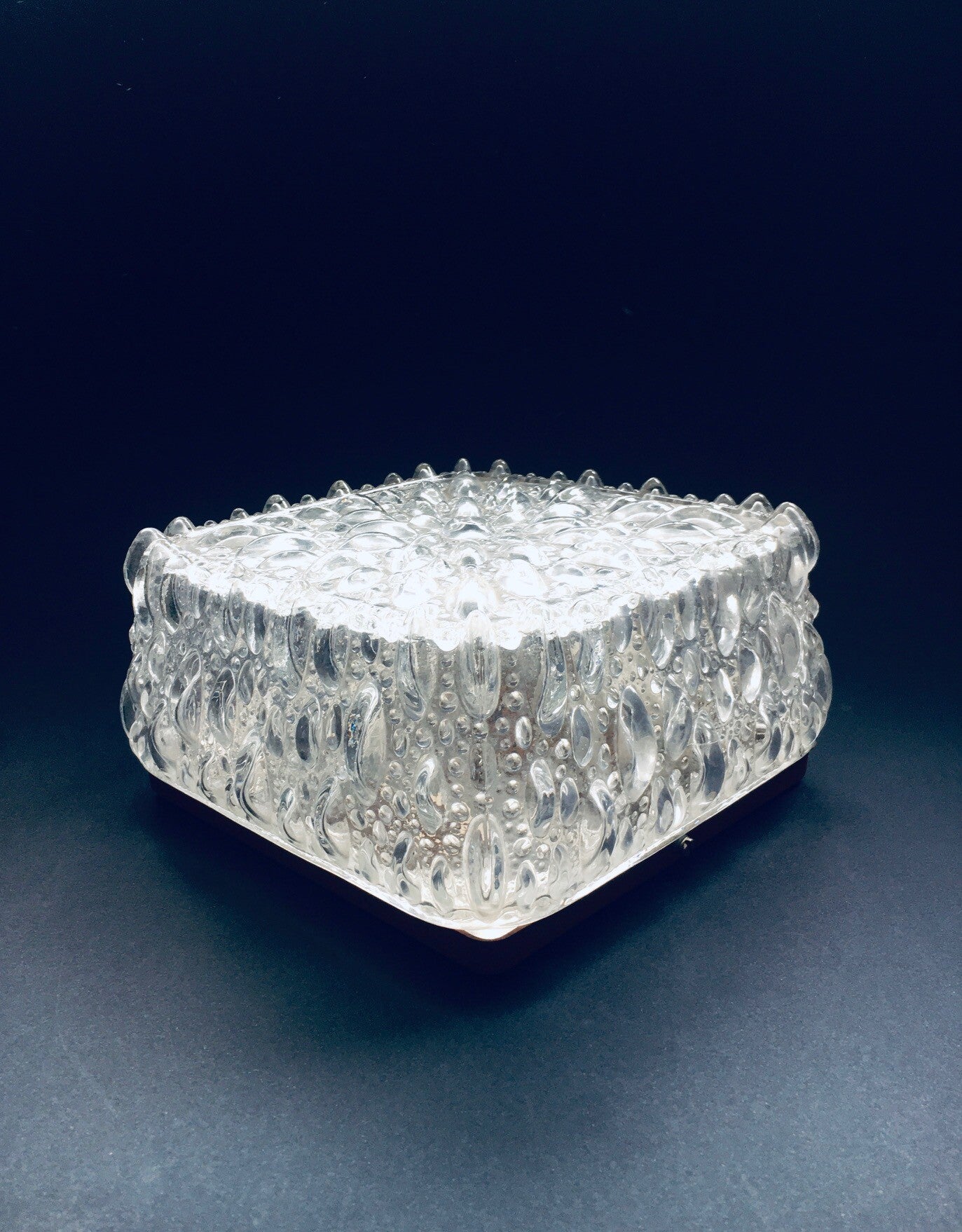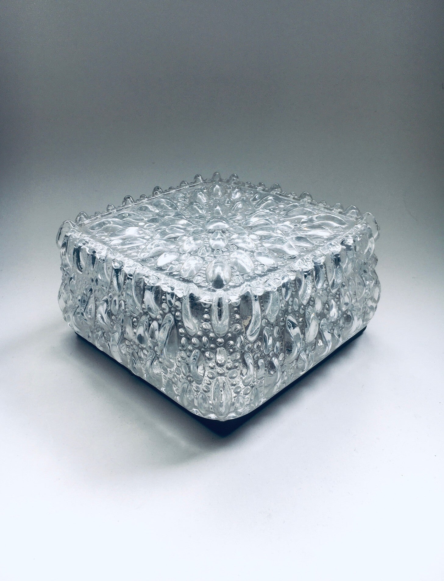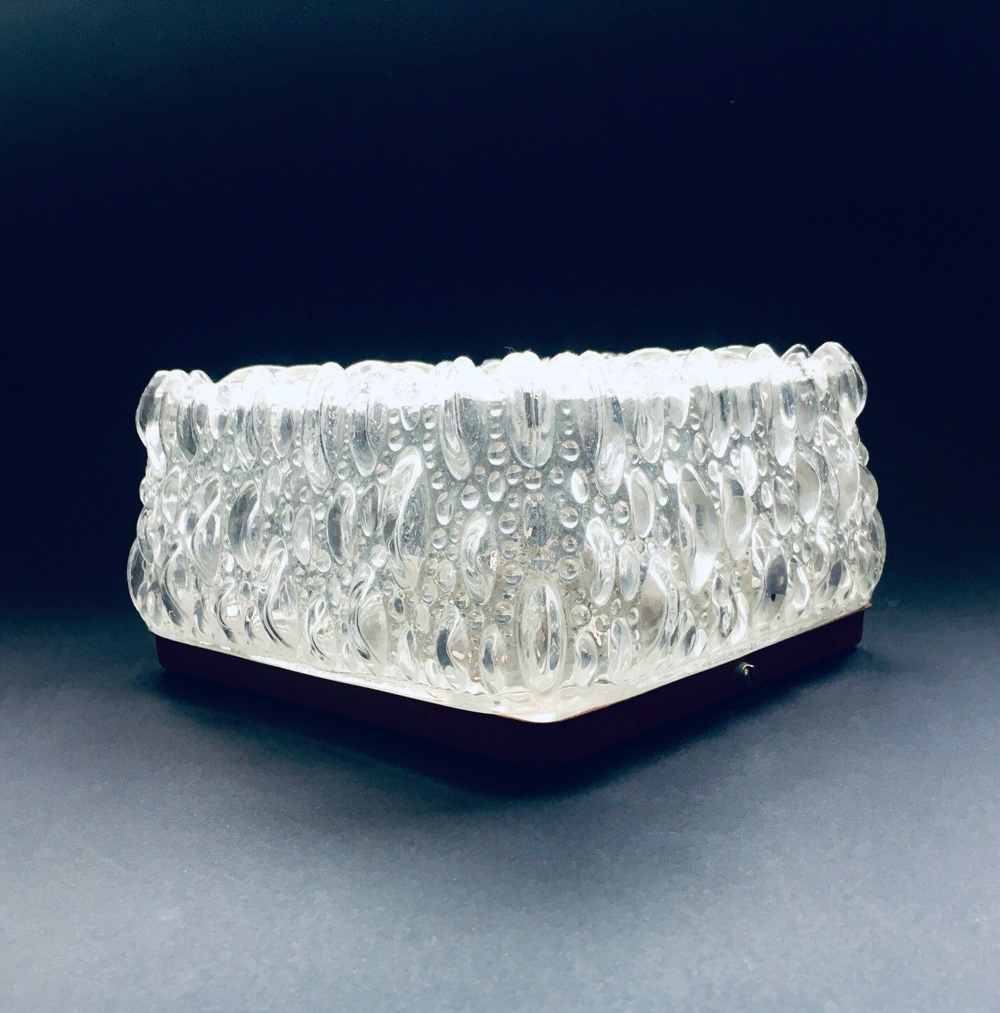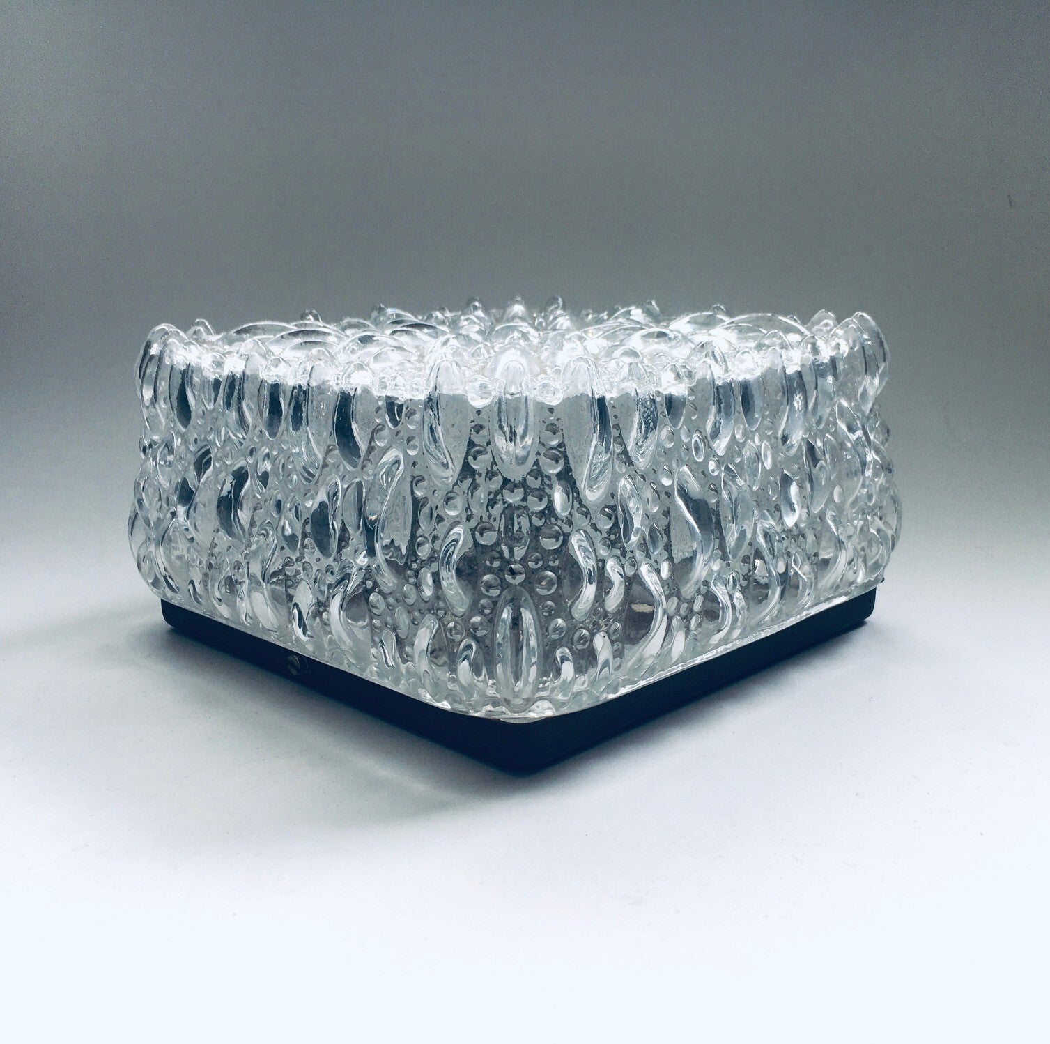 Vintage Midcentury Modern Design Square Glass Sconce Wall Lamp by Helena Tynell for Glashutte Limburg, Germany 1960's. Pressed glass with tear bubble pattern. In very good condition. Measures 11cm x 21cm x 21cm.
