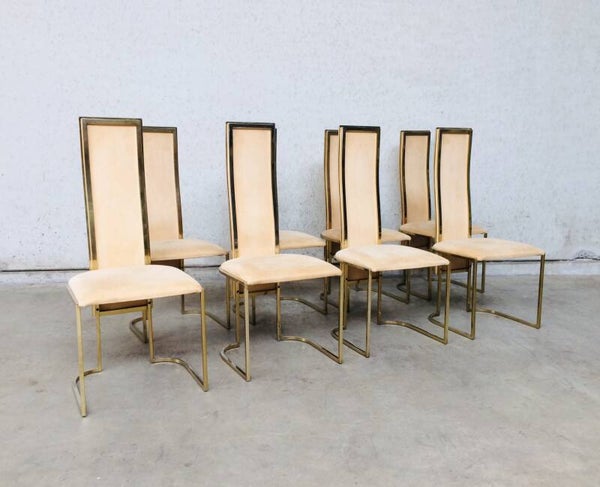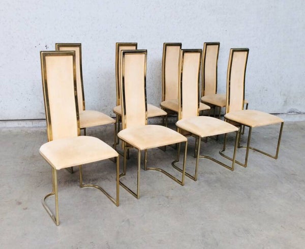Hollywood Regency Design set of 8 Dining Chairs by Belgo Chrom 1970's