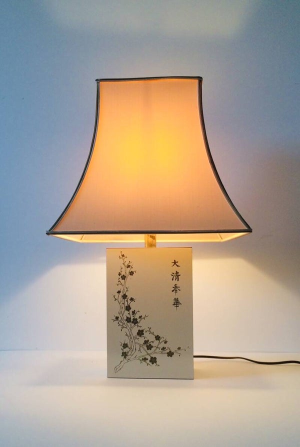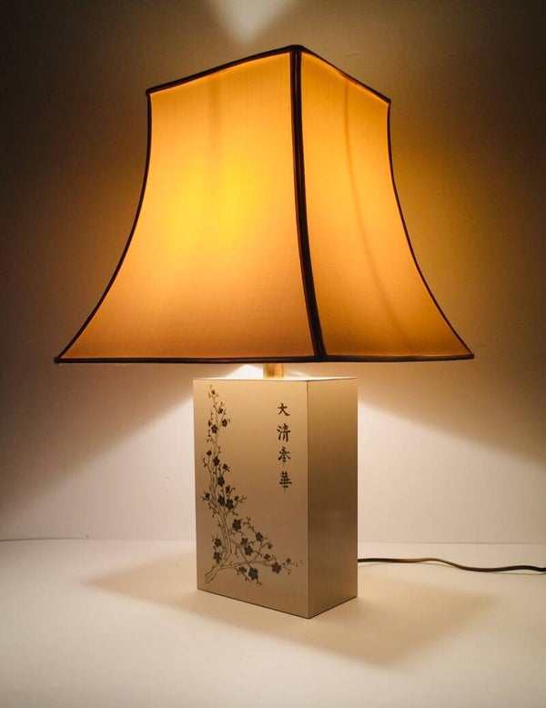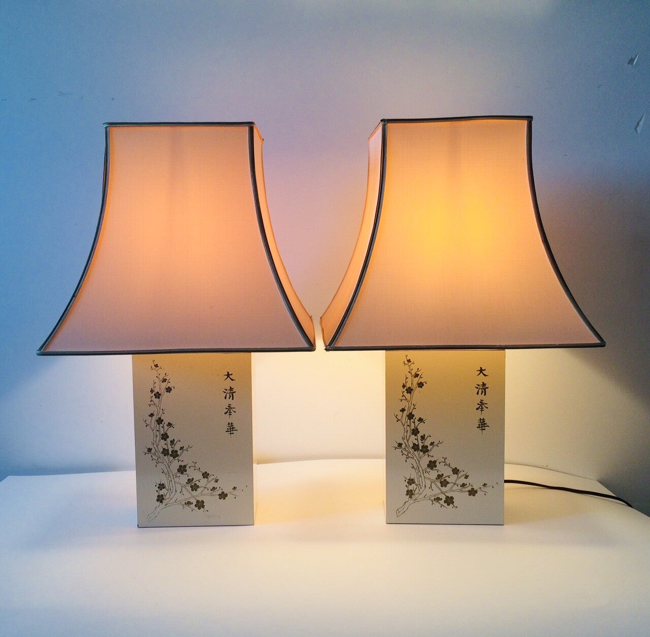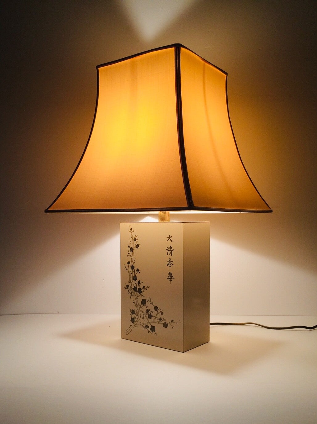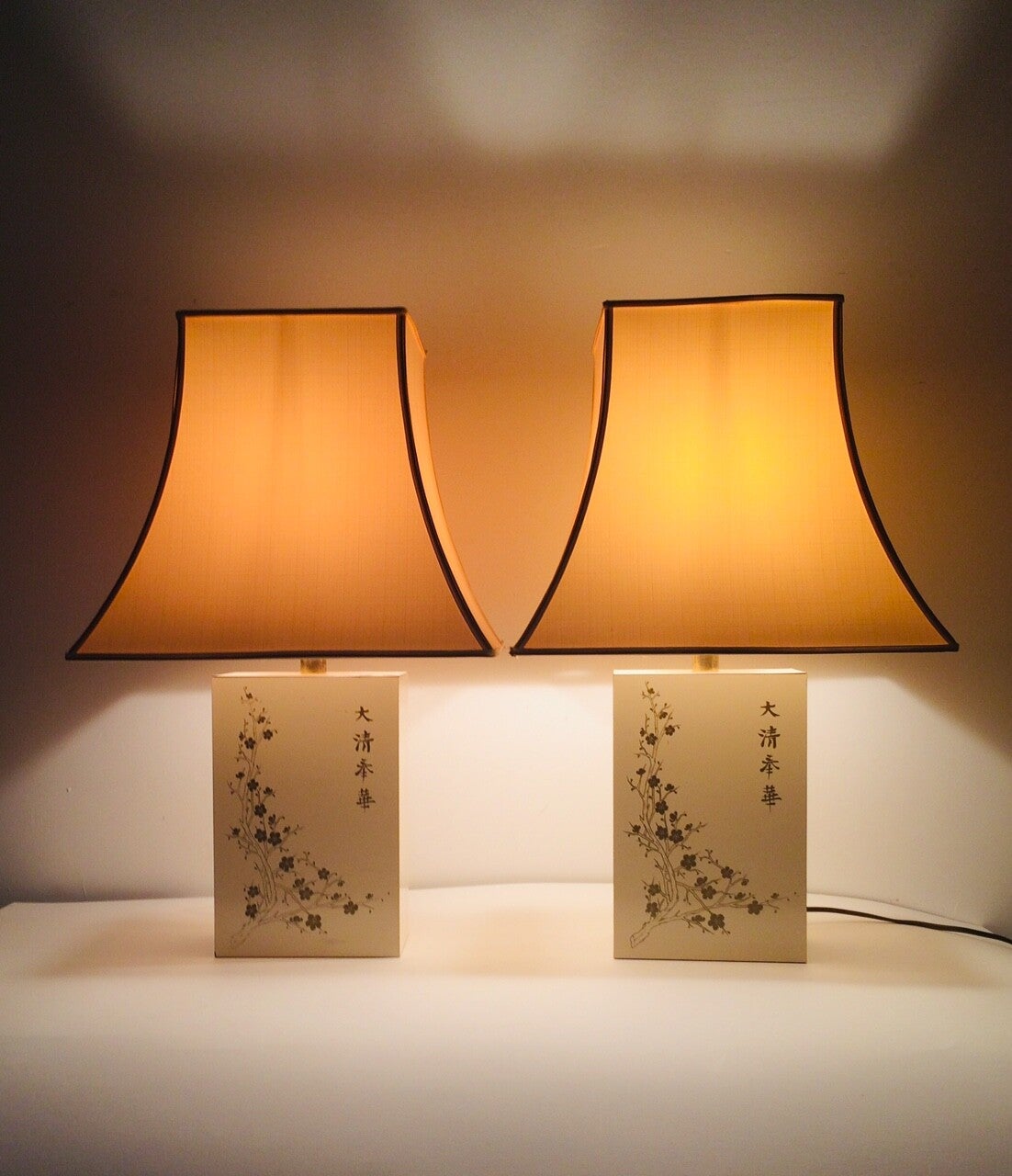 Vintage Midcentury Modern Design Hollywood Regency Style Set of 2 table lamps. Lamp Model JIFU by Maison Le Dauphin, France, 1970's. Complete with pagode lamp shades. In very good condition. Each measures: 59cm x 36cm x 36cm.
