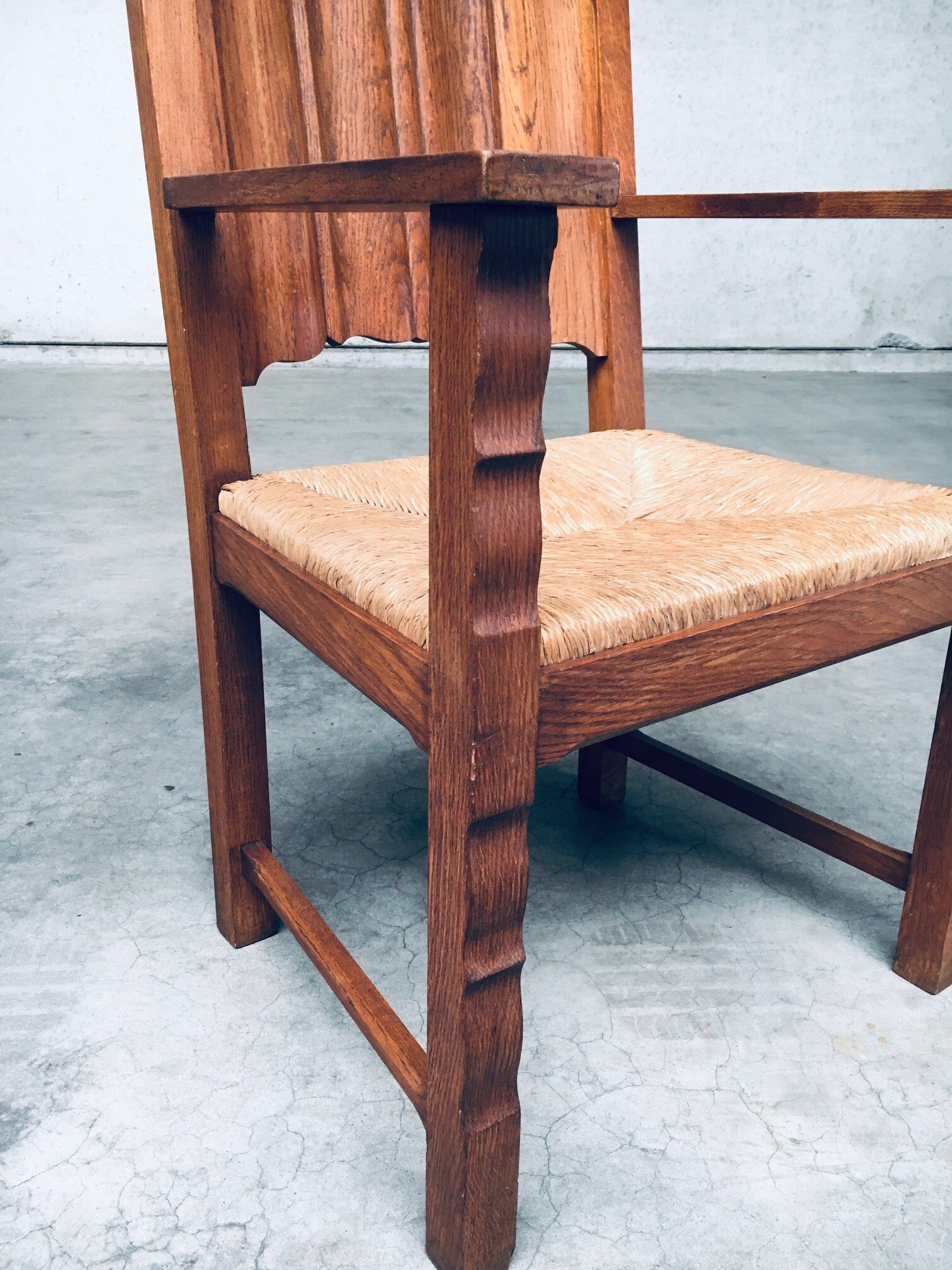 Rustic Travail Populaire Oak & Rush Arm Chair Set, 1960's Belgium